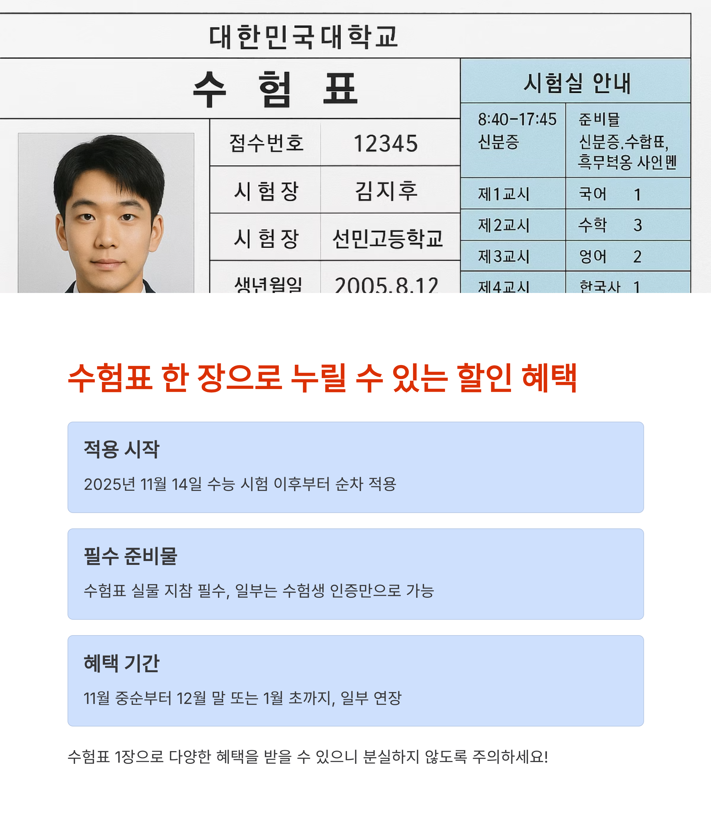 수험표 한 장으로 누릴 수 있는 할인 혜택, 어디까지 받아봤니?