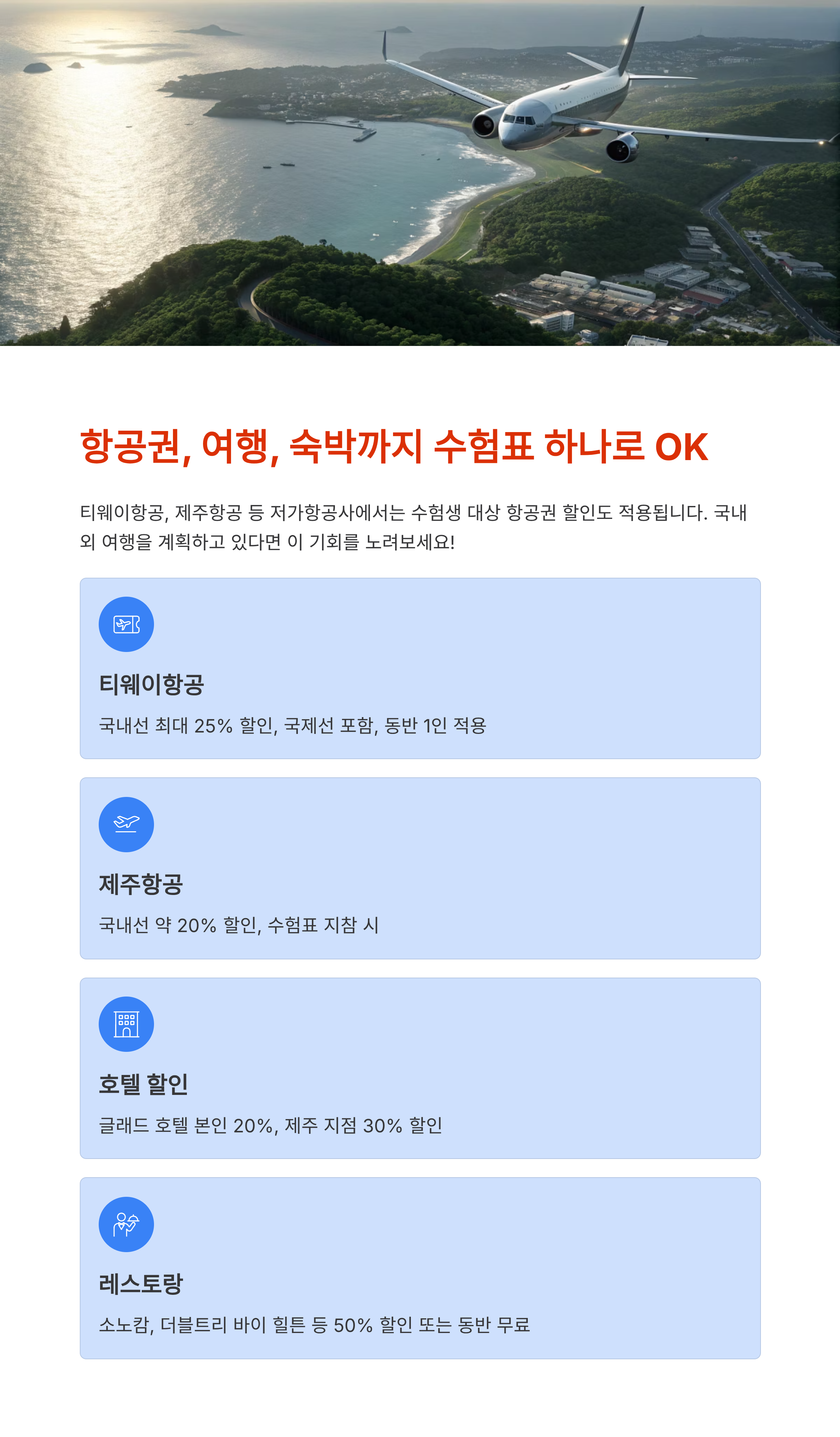 항공권, 여행, 숙박까지 수험표 하나로 OK
