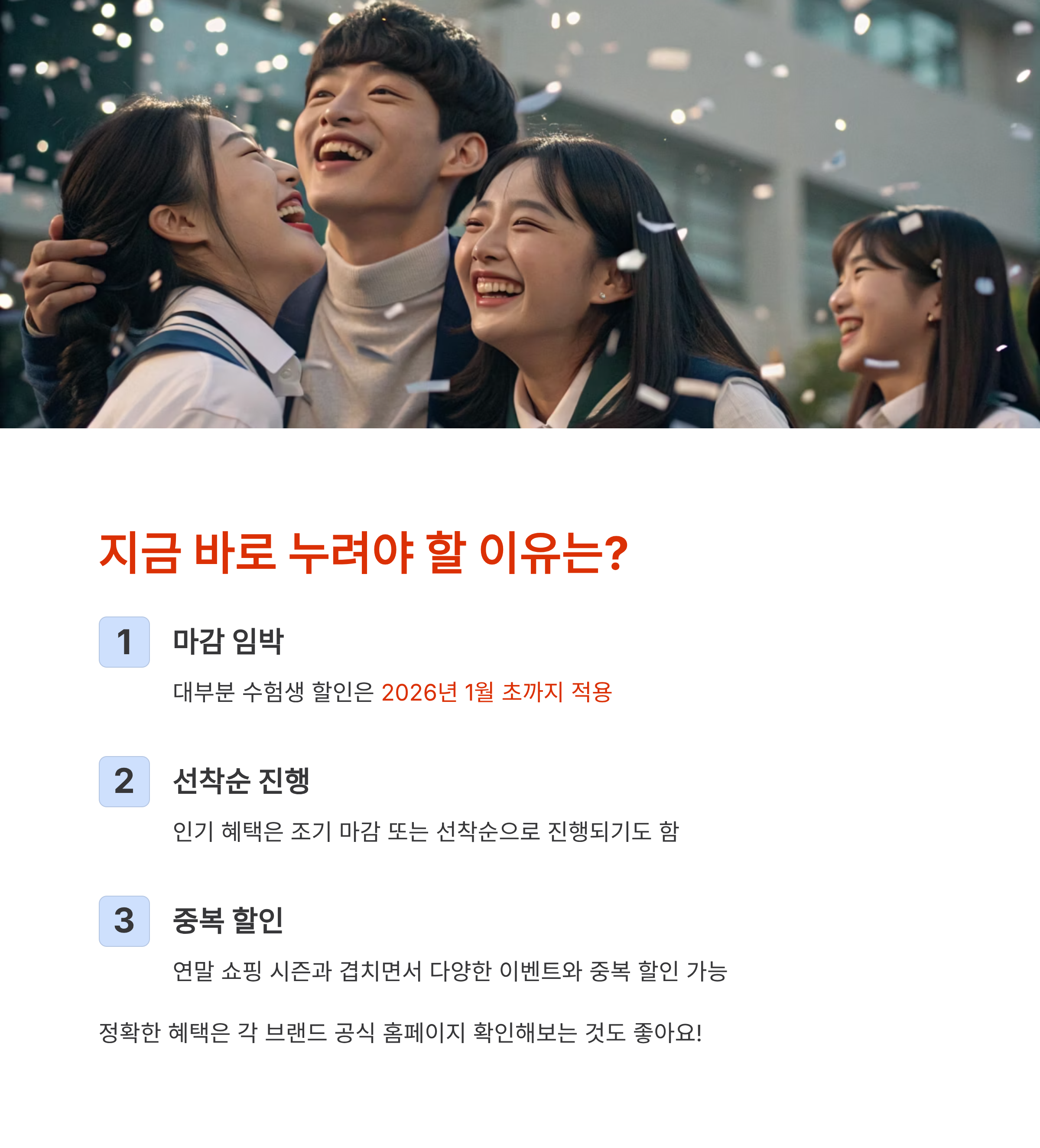 - 대부분 수험생 할인은 2026년 1월 초까지 적용