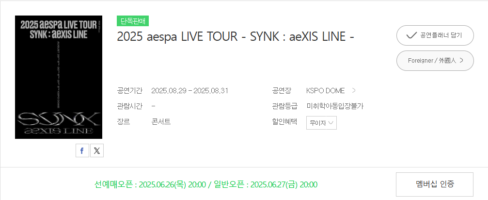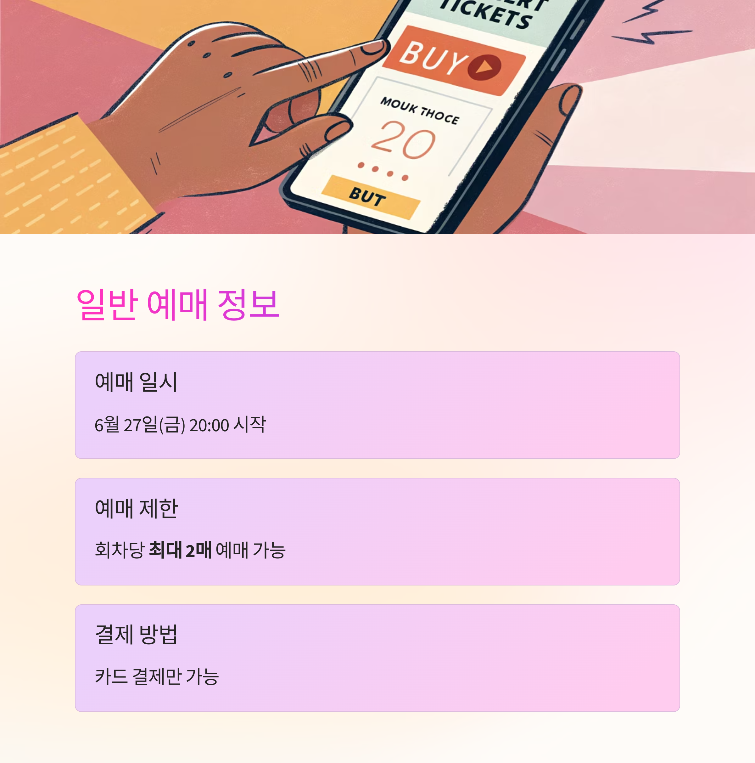 - 일반 예매: 6월 27일(금) 20:00 시작