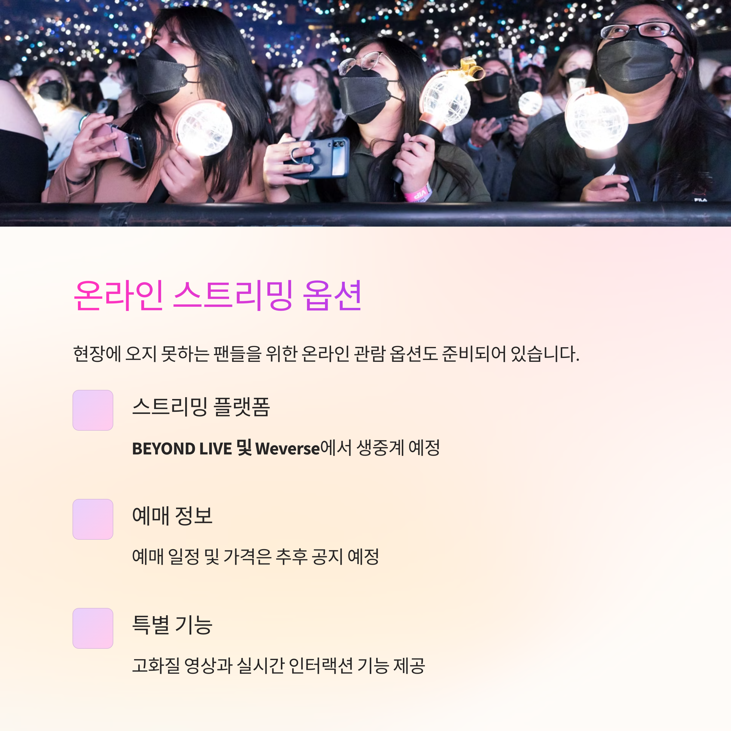 BEYOND LIVE 및 Weverse에서 생중계 예정 - 예매 일정 및 가격은 추후 공지