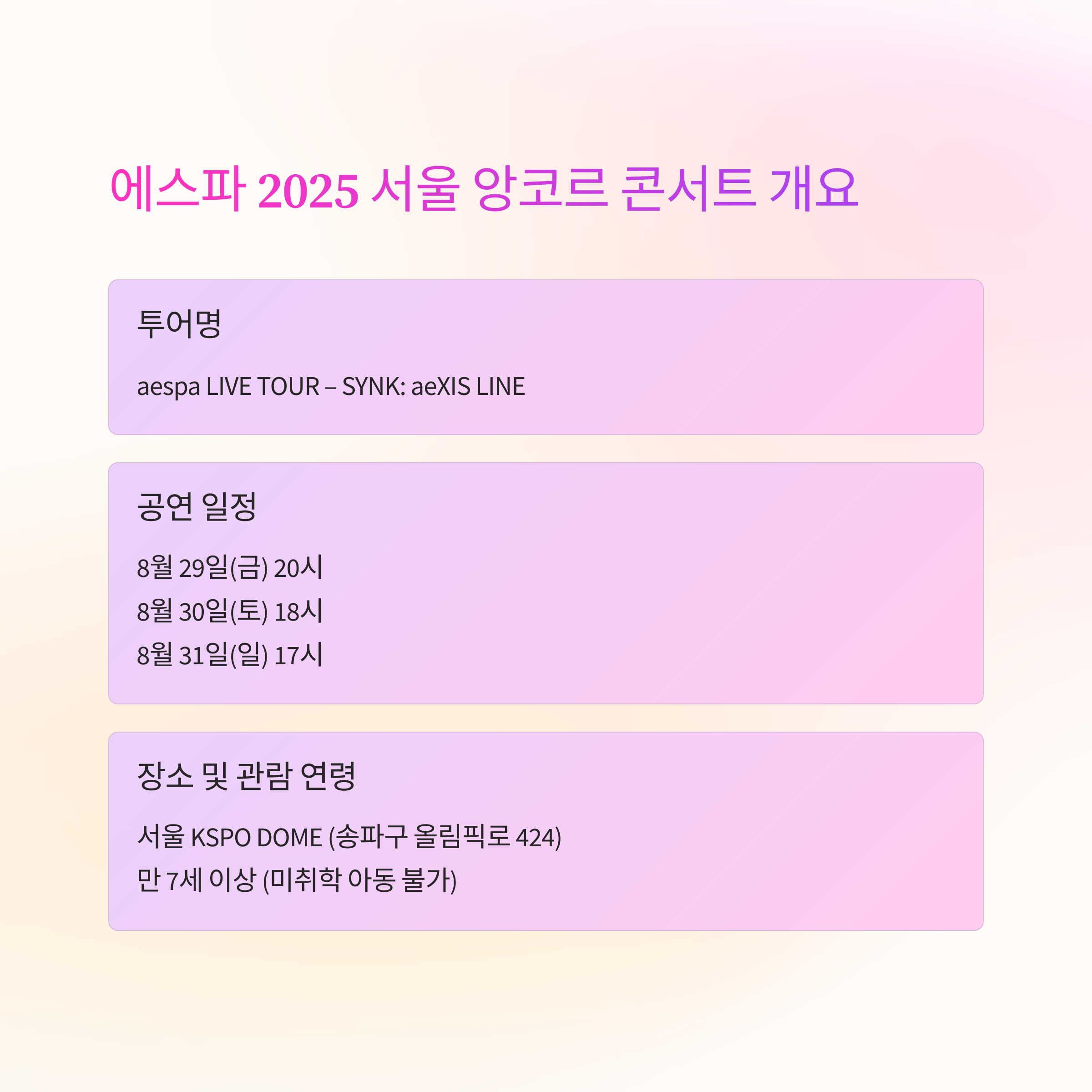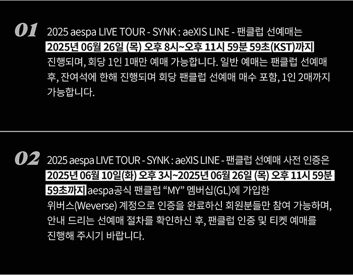 - 투어명: aespa LIVE TOUR – SYNK: aeXIS LINE