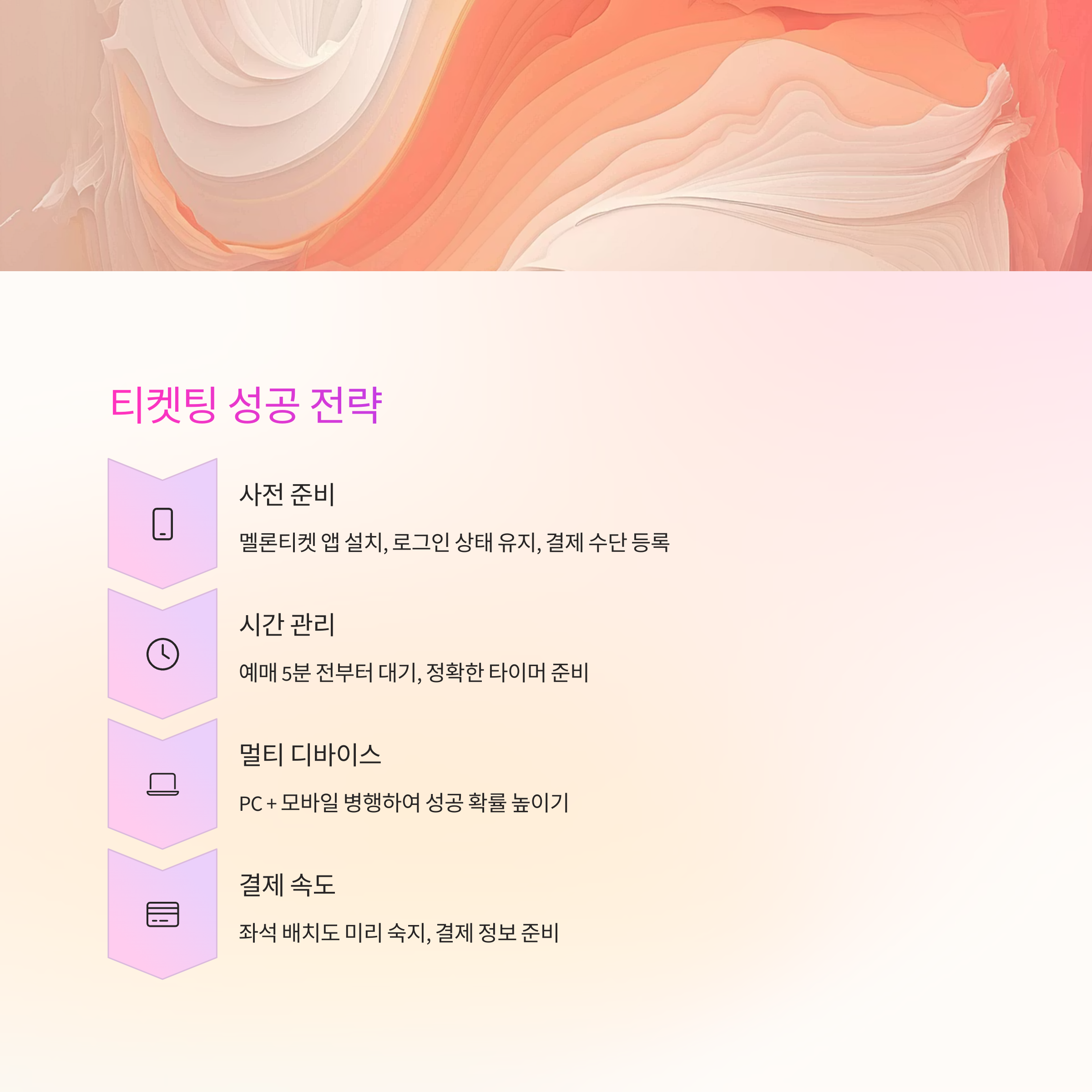 - 멜론티켓 사전 준비: 앱 설치, 로그인 상태 유지, 결제 수단 등록