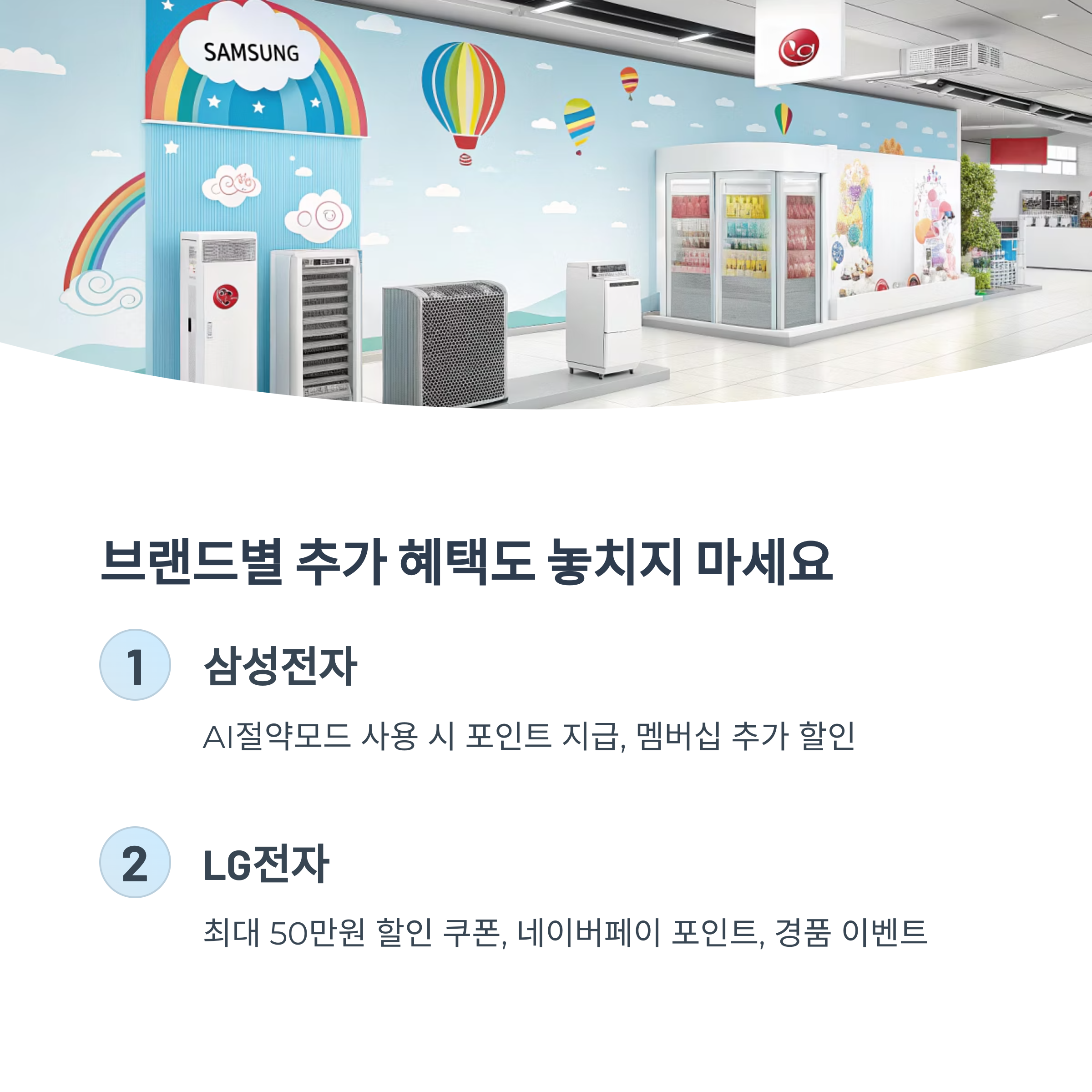 | LG전자 | 최대 50만원 할인 쿠폰, 네이버페이 포인트, 경품 이벤트 등 |