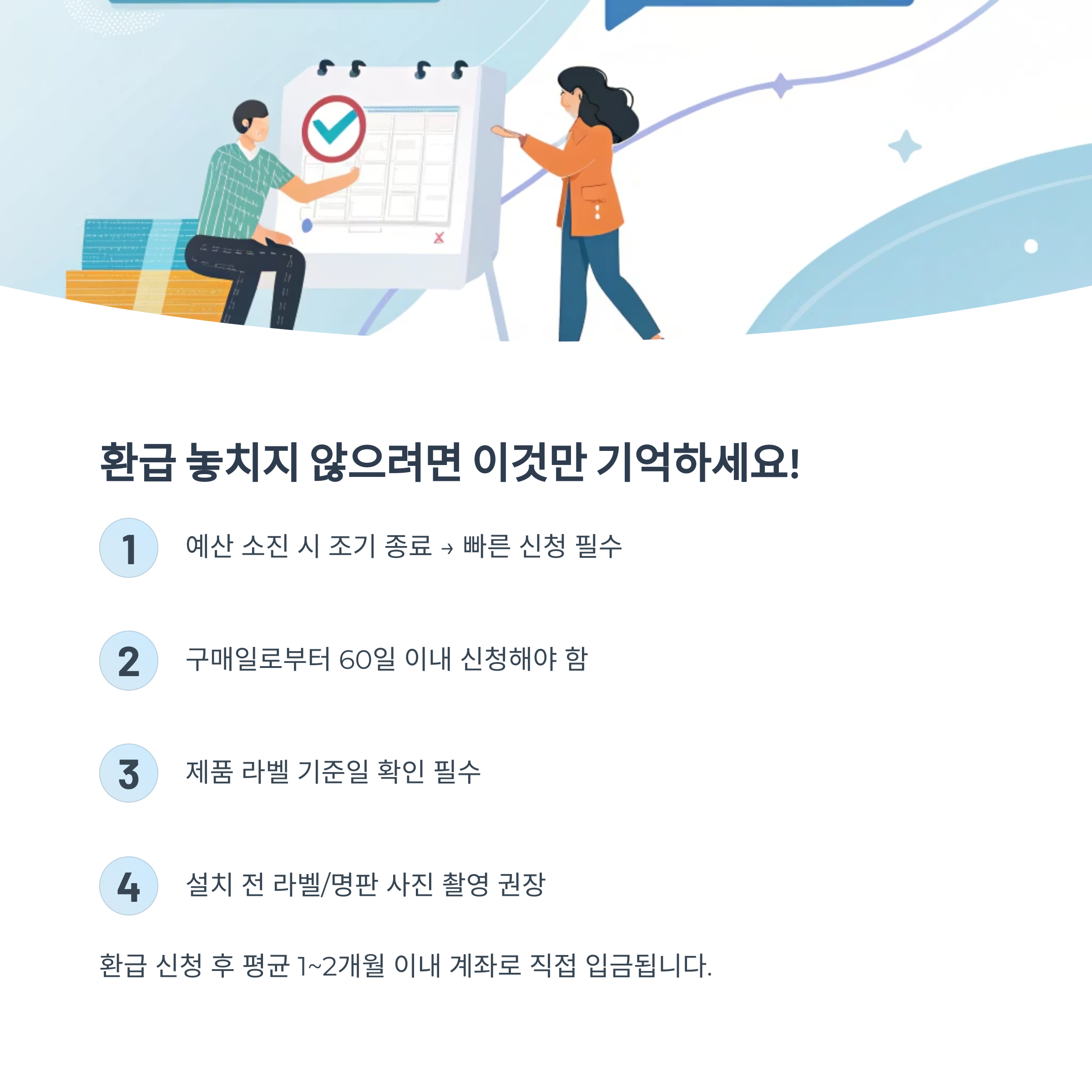 - 구매일로부터 60일 이내 신청 → 기한 넘기면 환급 불가