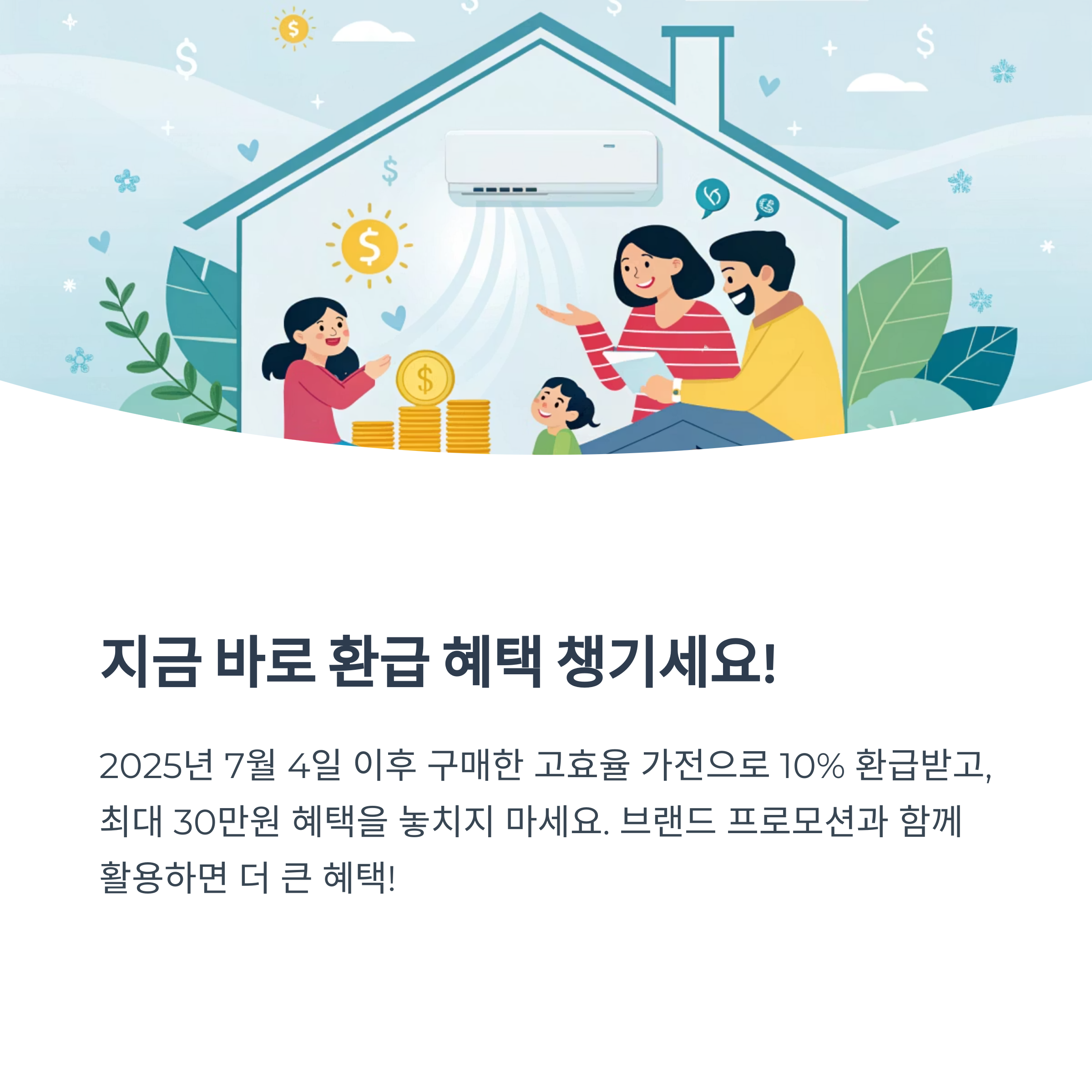 - 2025년 7월 4일 이후 구매한 고효율 가전 → 10% 환급 가능
