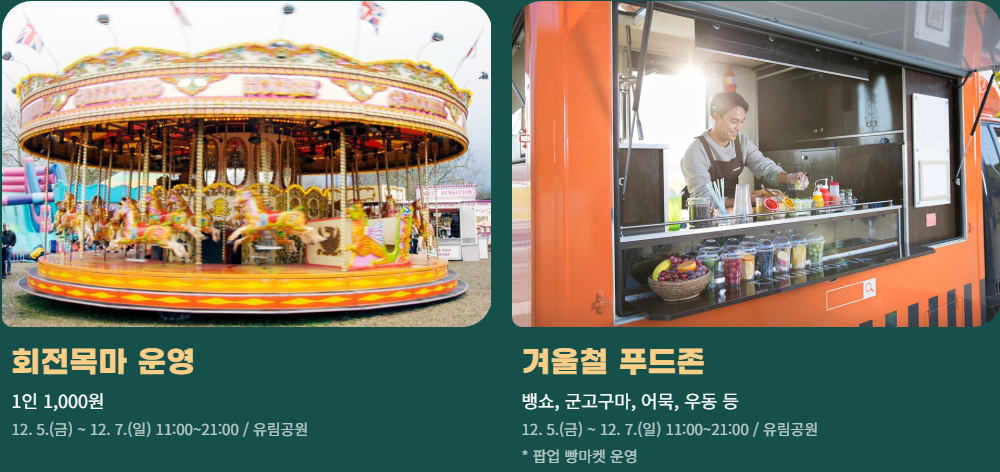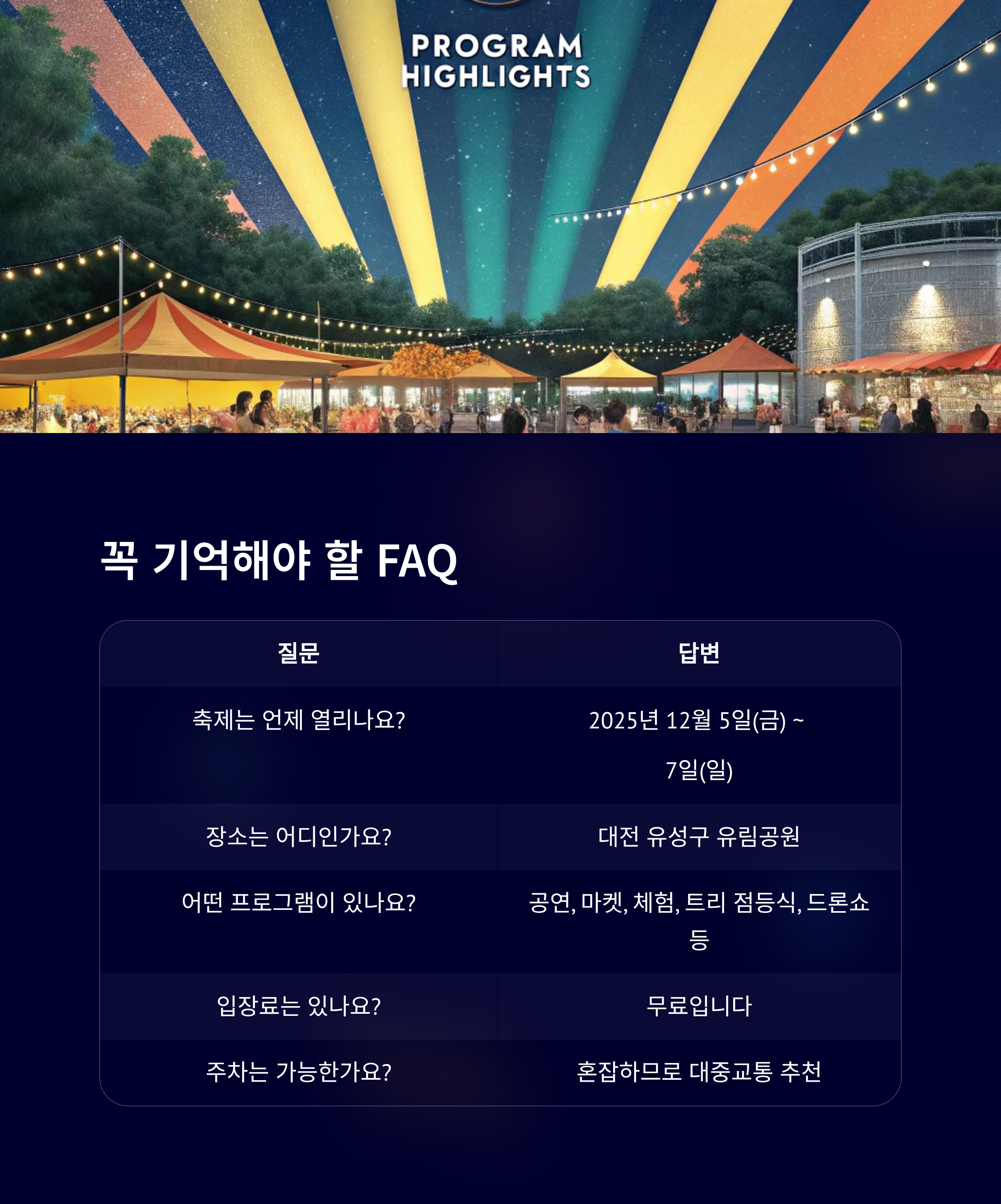 | 축제는 언제 열리나요? | 2025년 12월 5일(금) ~ 7일(일) |