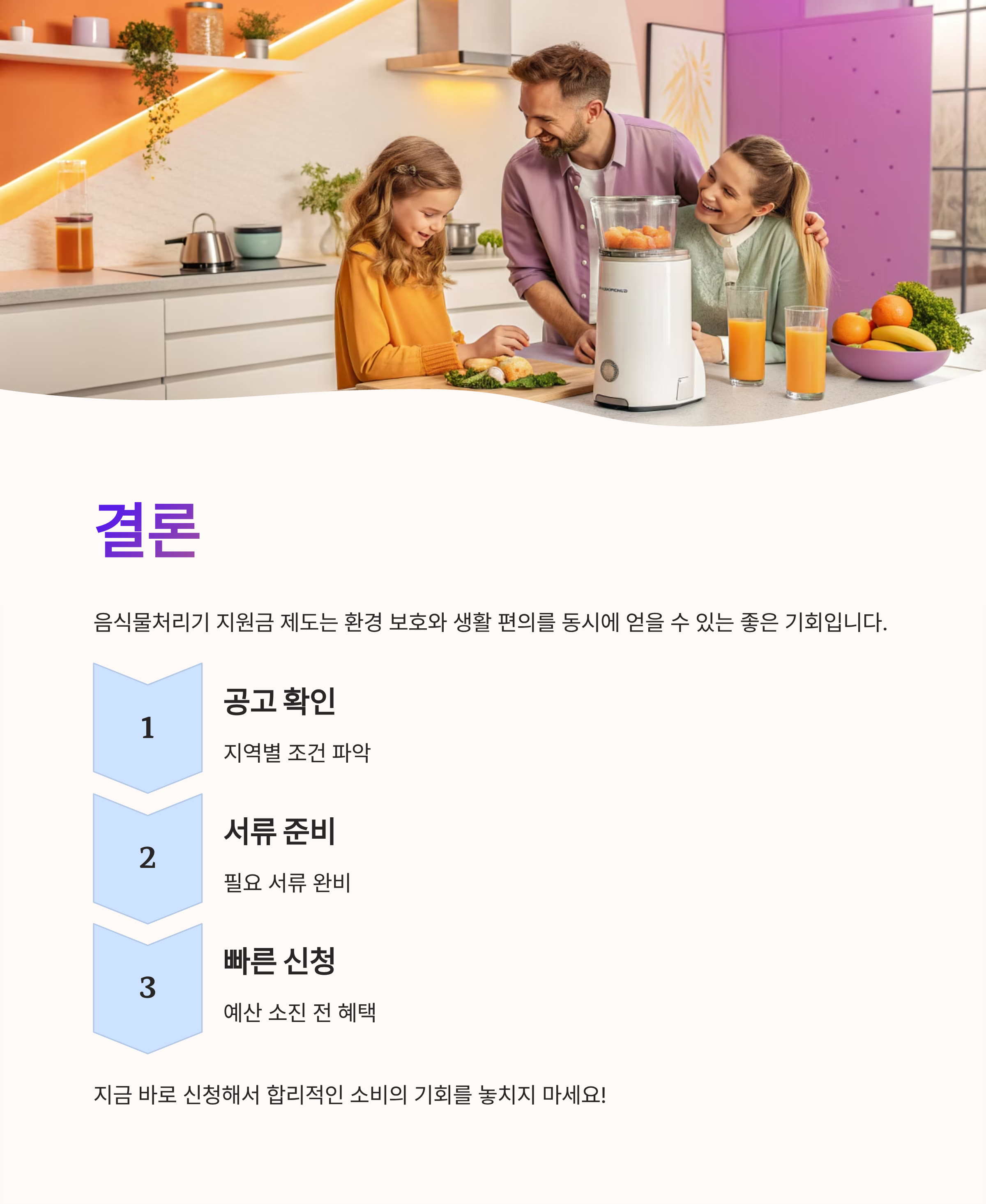 음식물처리기 지원금 제도는 환경을 보호하면서 생활 편의를 높일 수 있는 좋은 기회입니다.