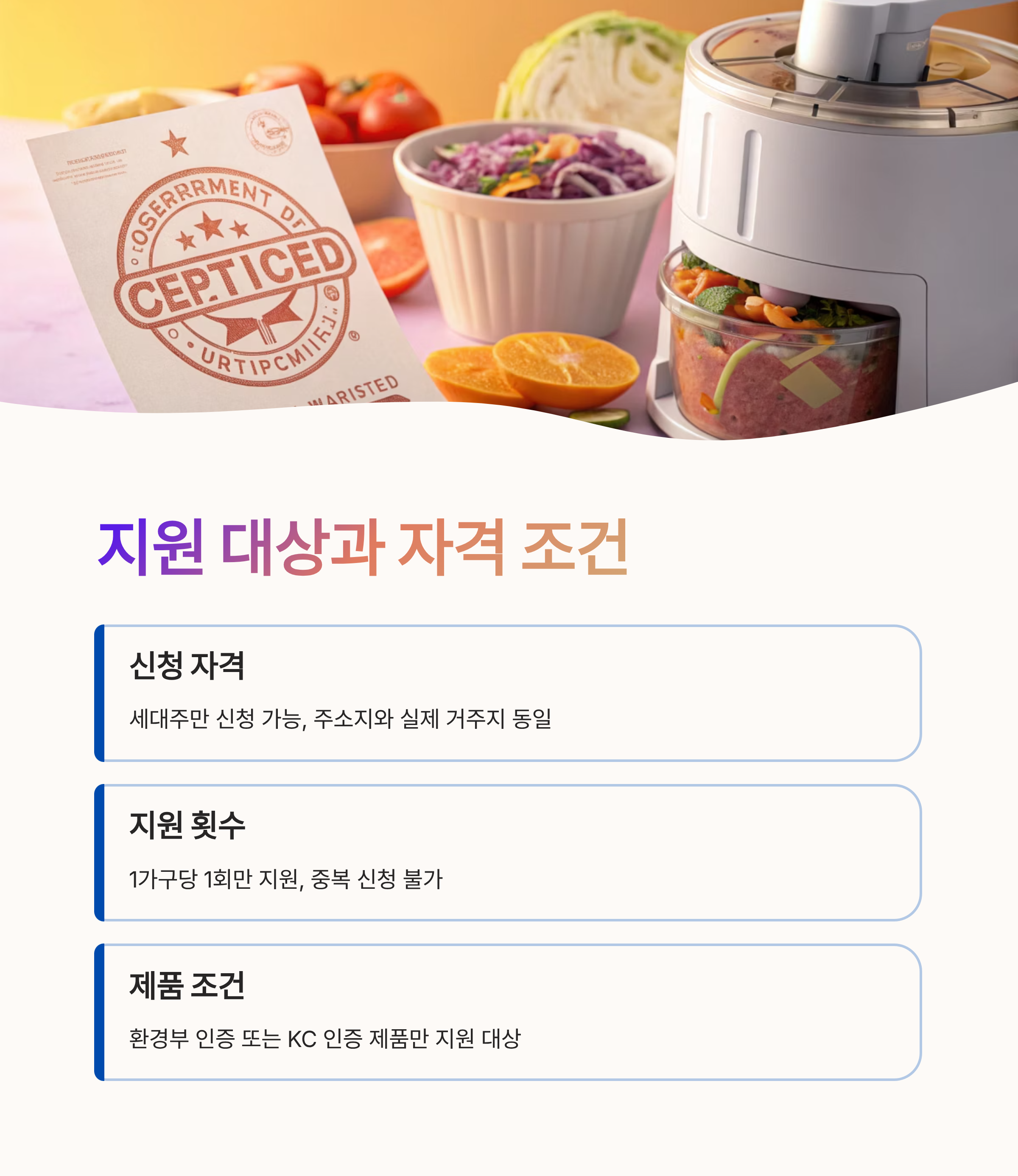 음식물처리기 지원금은 지역별 기준을 충족해야 받을 수 있습니다. 보통 세대주만 신청할 수 있으며, 주소지와 실제 거주지가 동일해야 합니다.