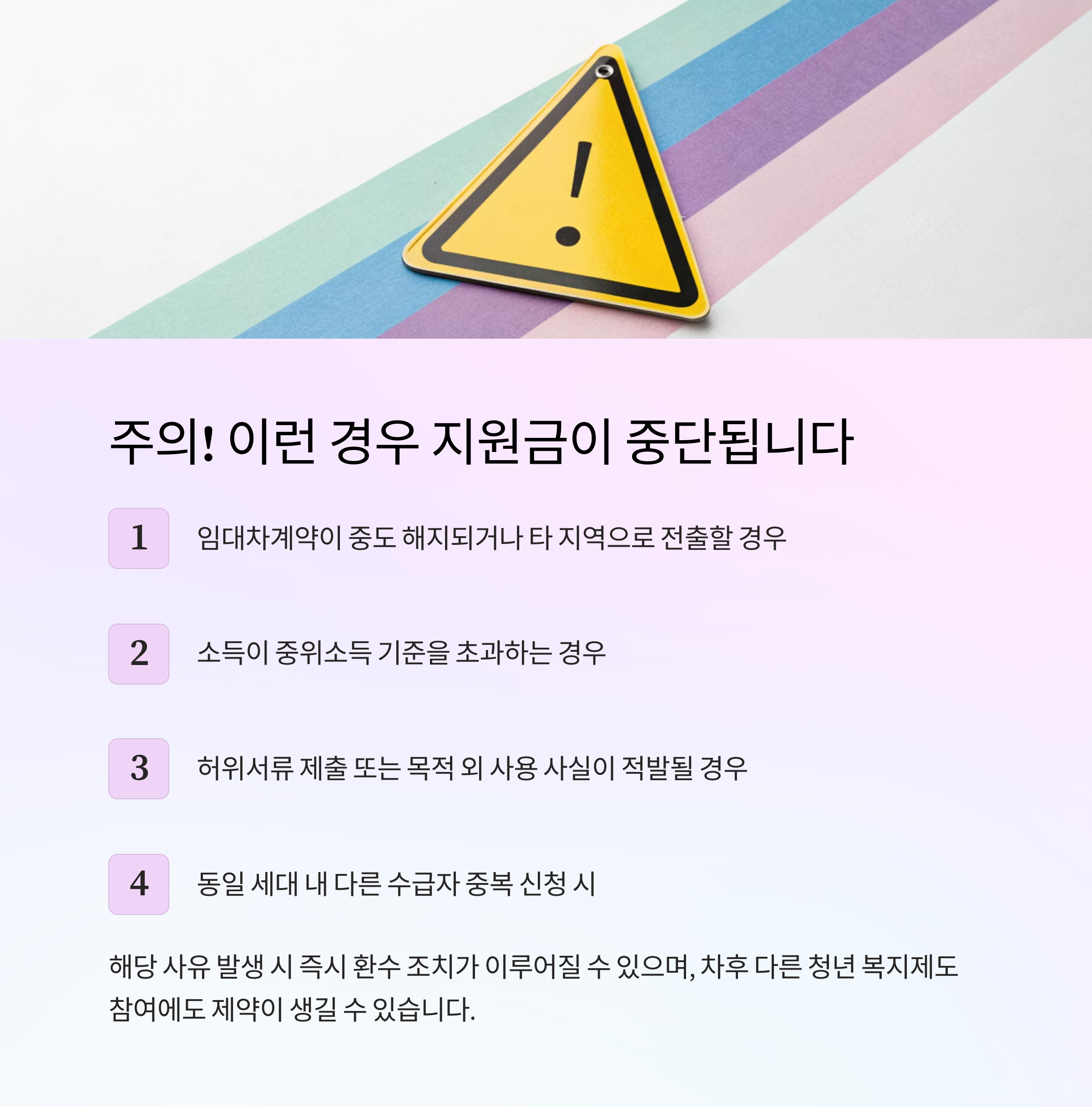 차후 다른 청년 복지제도 참여에도 제약이 생길 수 있습니다.