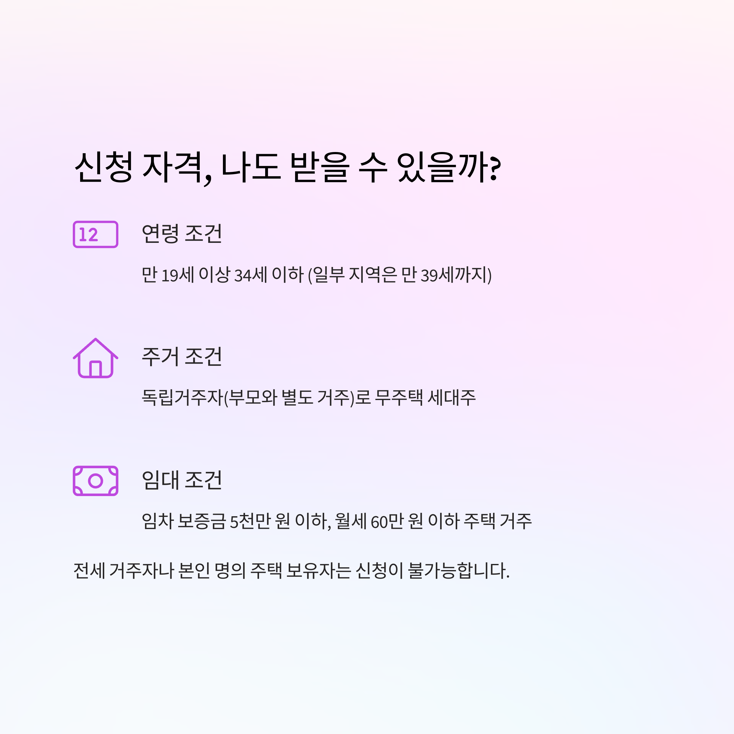 청년 월세 지원금 신청을 위해서는 아래 조건을 모두 충족해야 합니다.