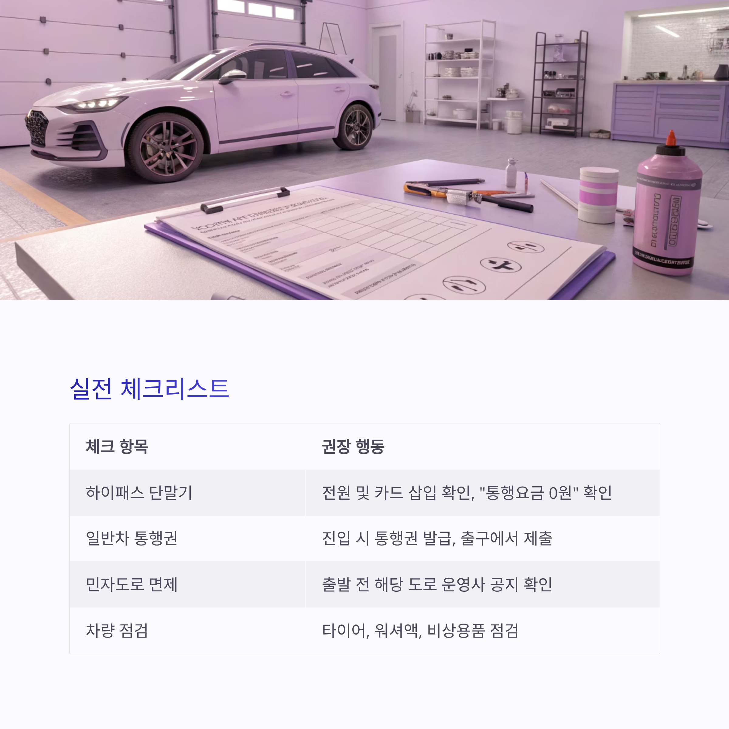 | 하이패스 단말기 상태 | 전원 및 카드 삽입 확인, “통행요금 0원” 확인 |