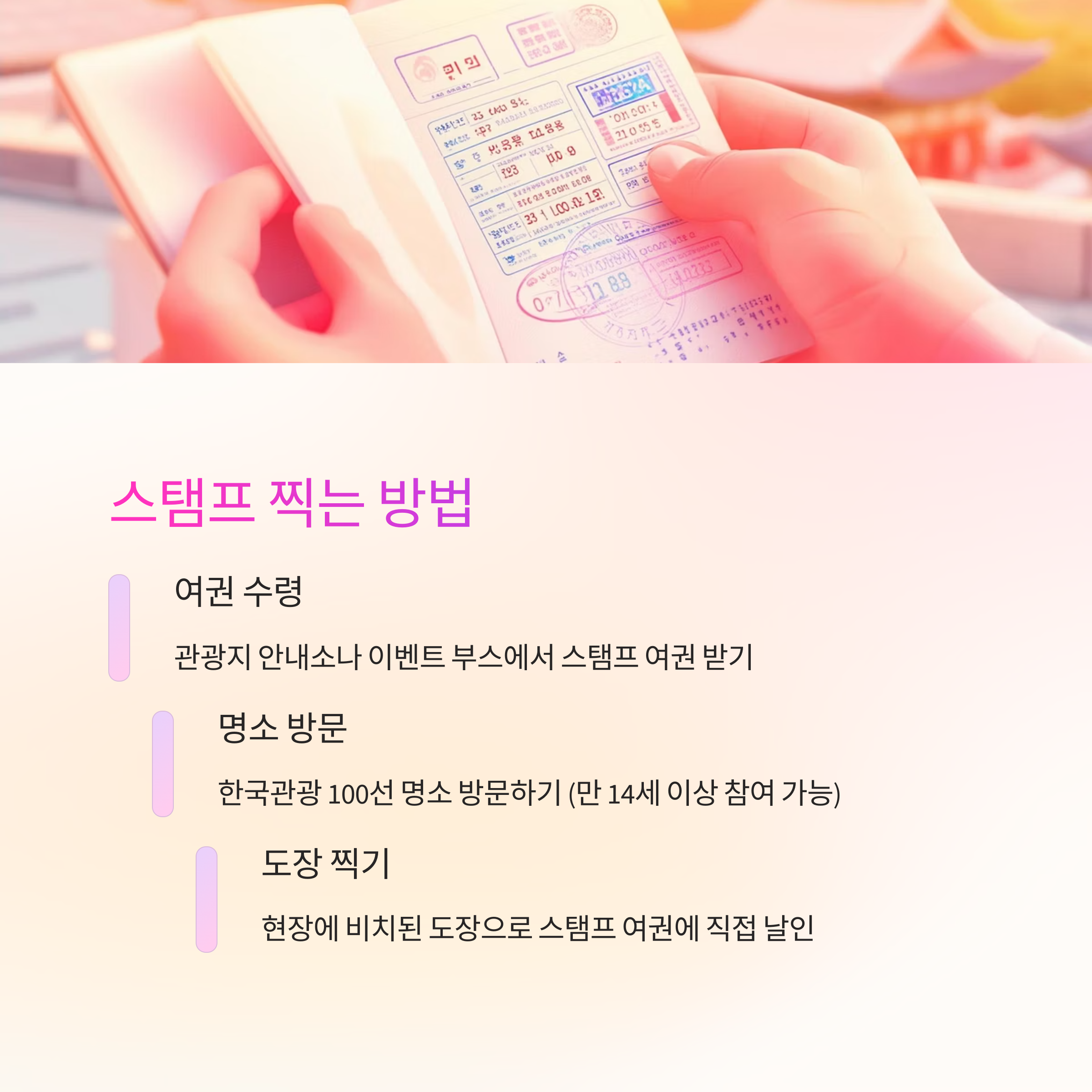 한국관광 100선 명소를 방문해 스탬프 여권에 도장만 찍으면 끝!