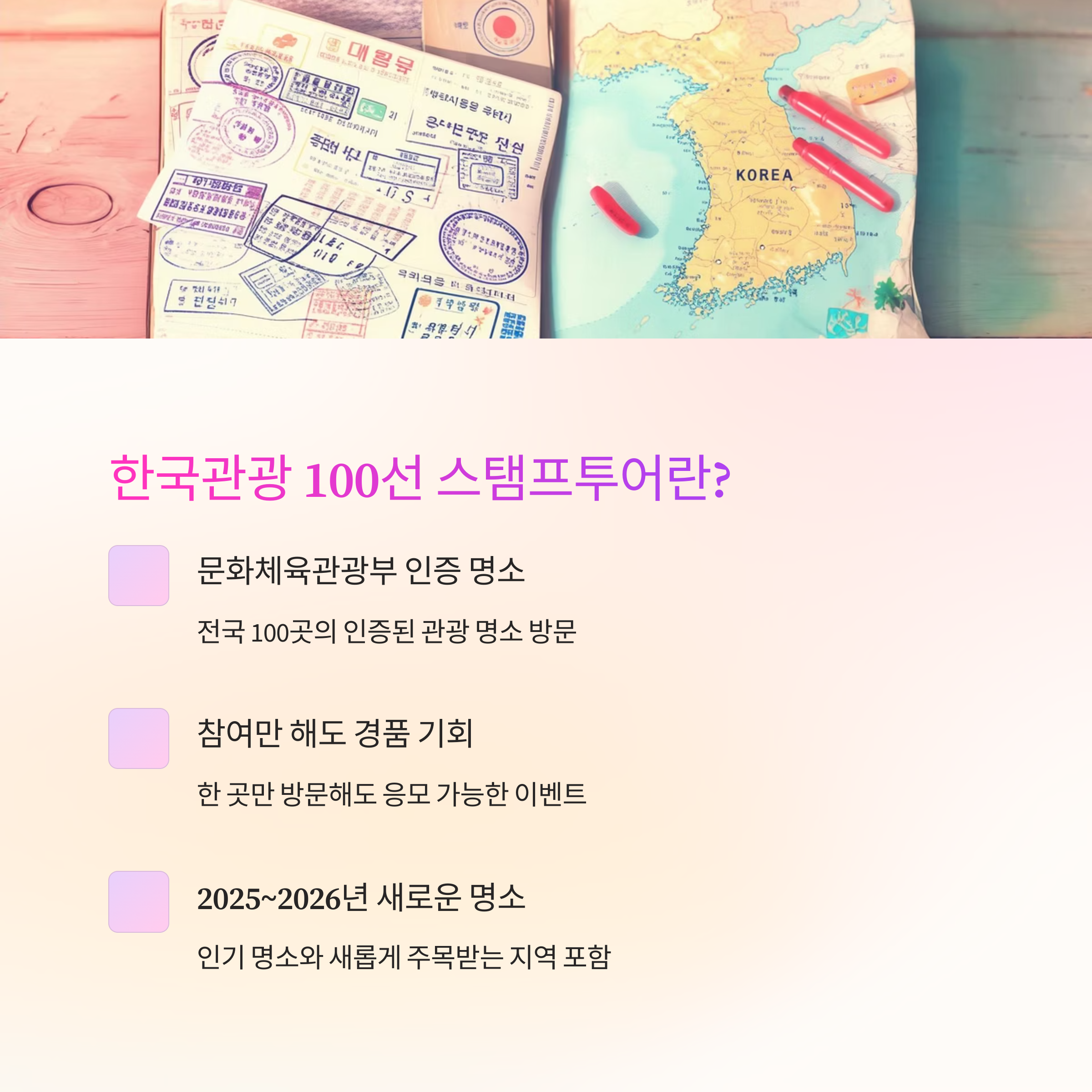 2025~2026년의 새로운 '한국관광 100선'은