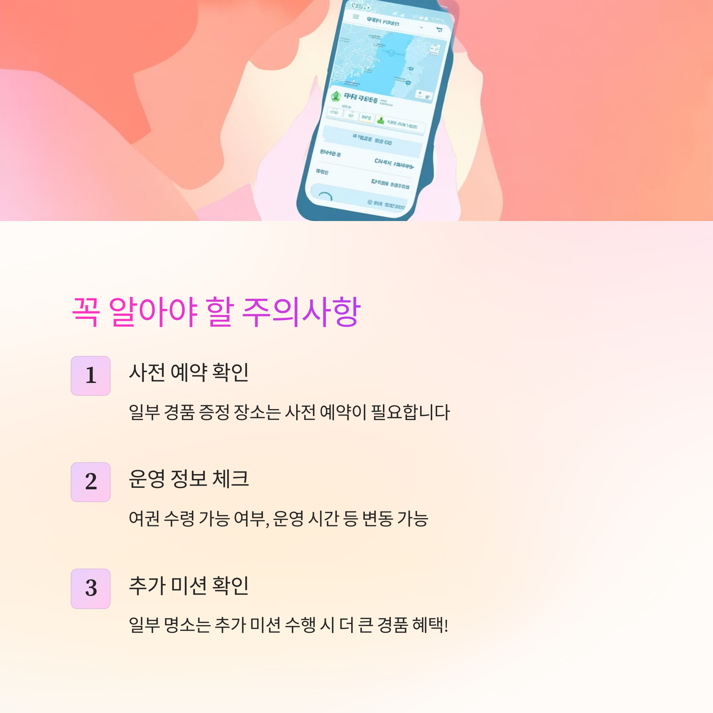 - 일부 명소는 추가 미션 수행 시 더 큰 경품 혜택이 주어지기도 합니다.