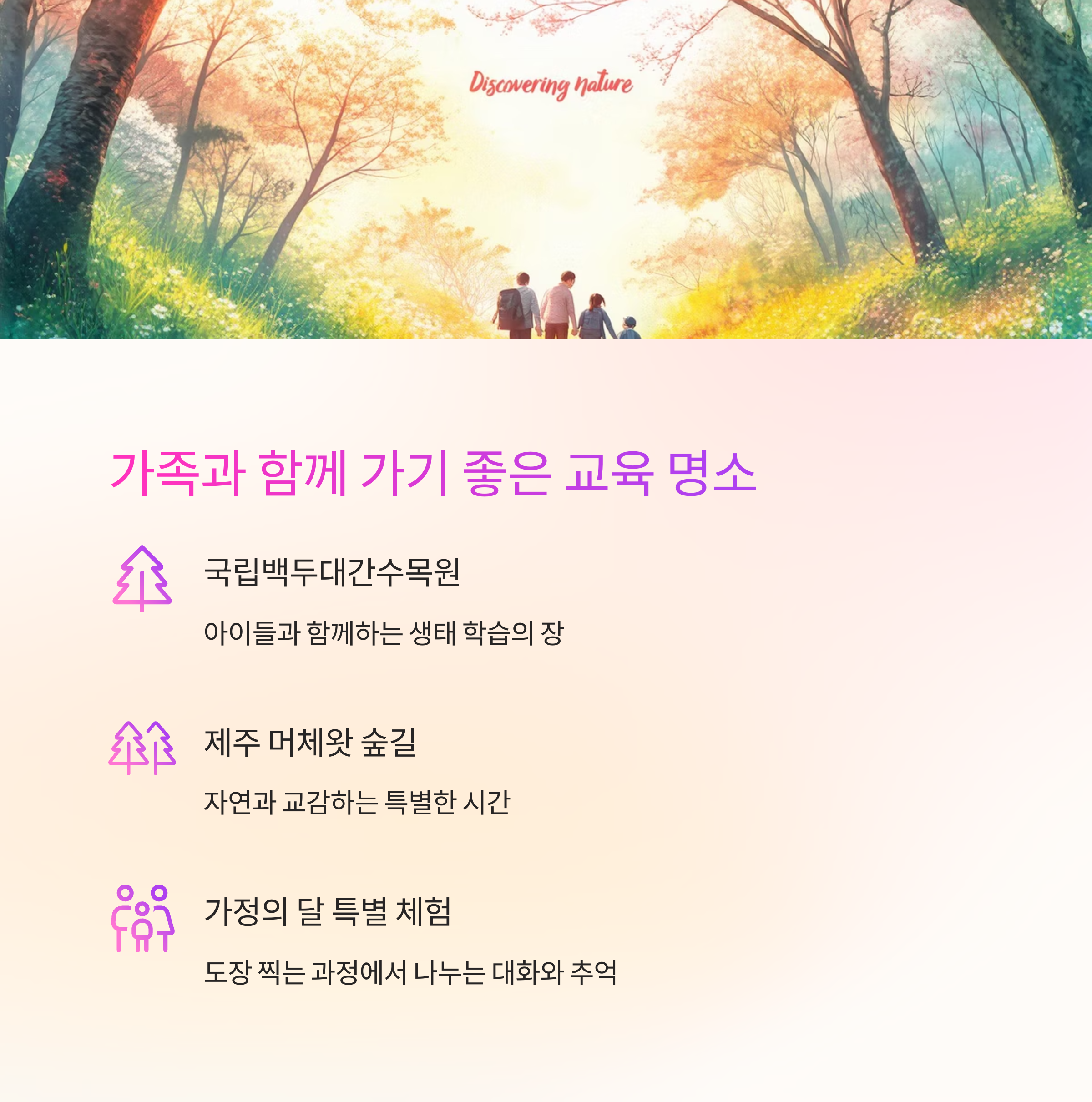 "가정의 달 5월, 가족 여행에 교육적 요소까지 더해보세요."