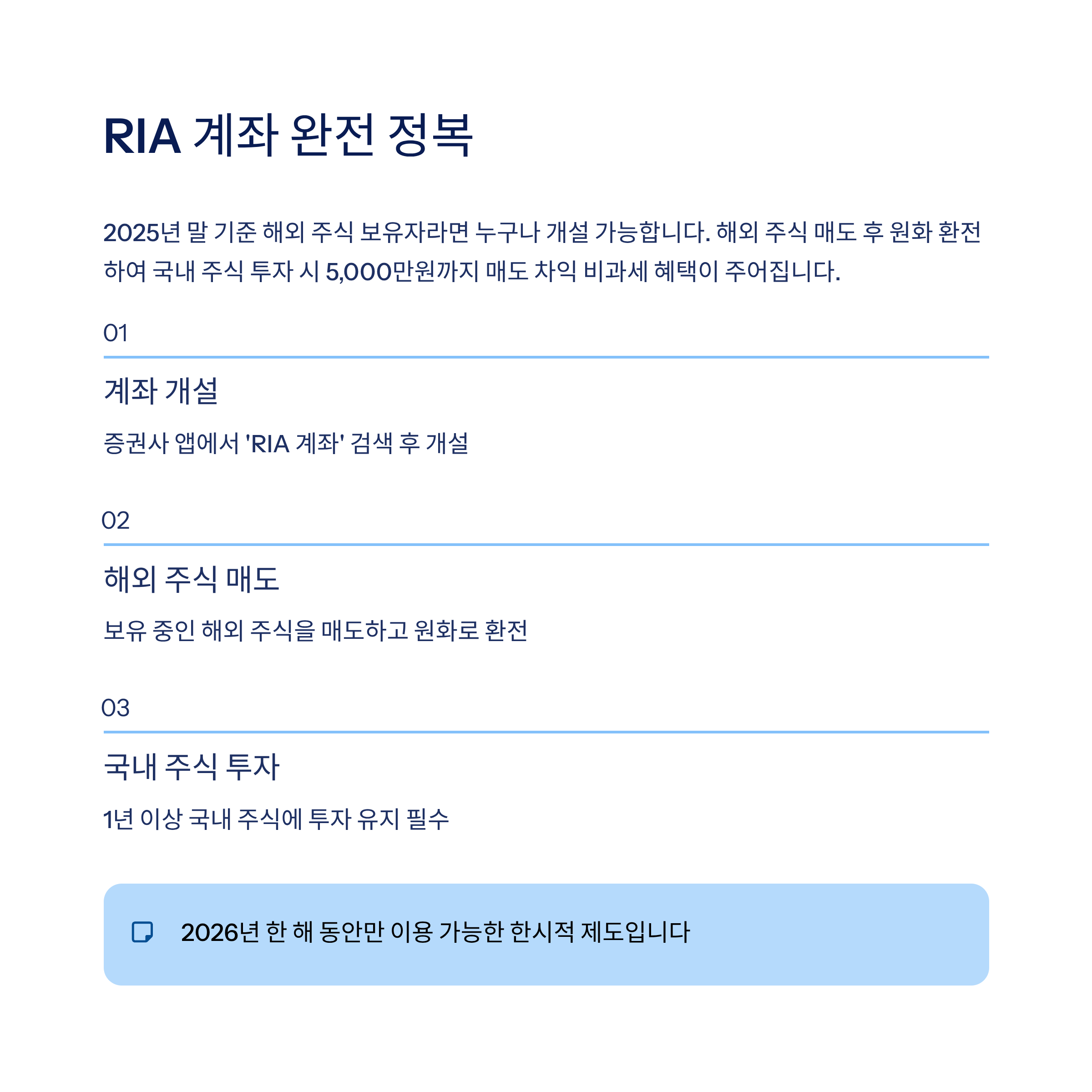 RIA 계좌는 2025년 말 기준 해외 주식을 보유한 개인이라면 누구나 개설 가능합니다.