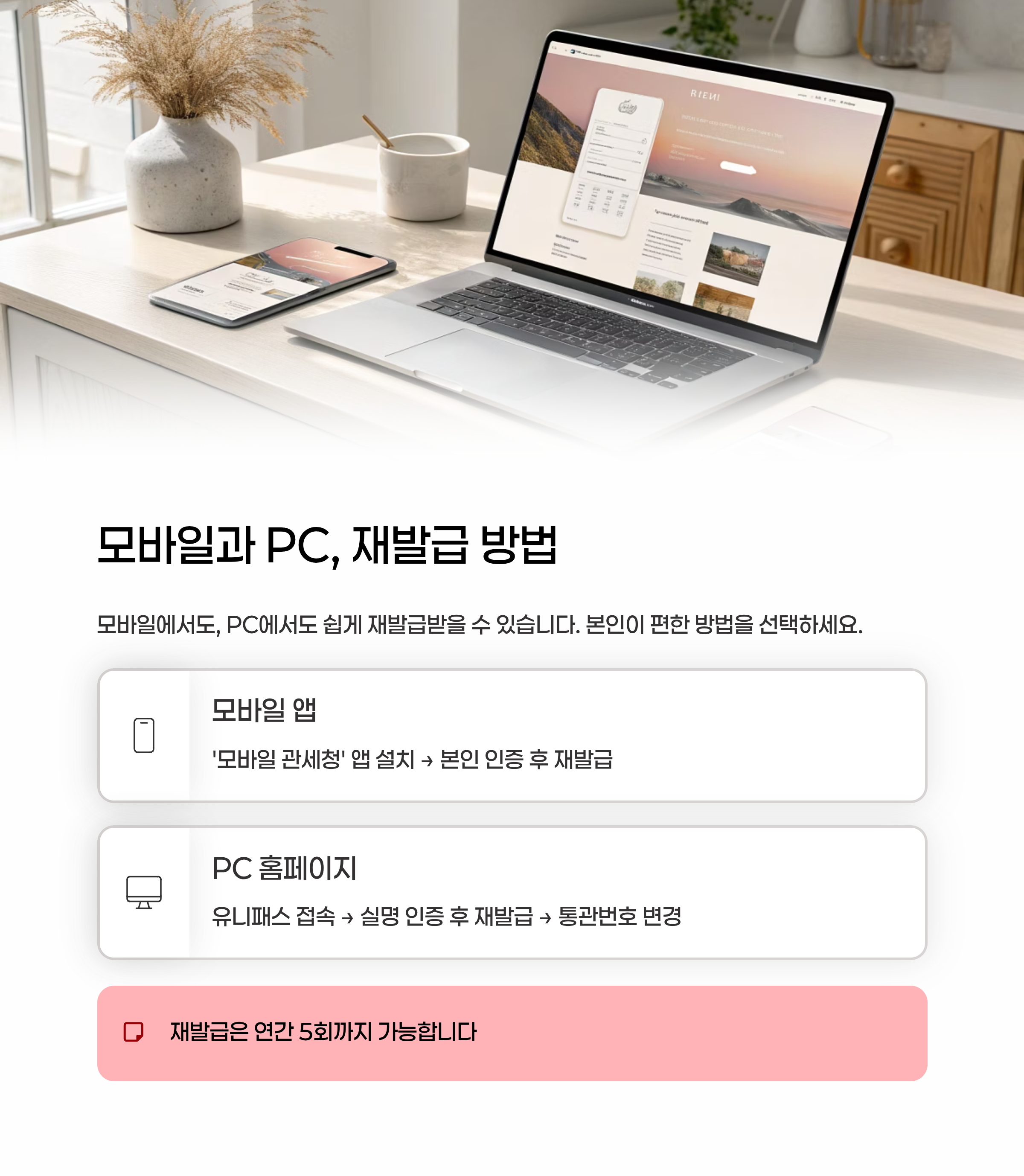 모바일에서도, PC에서도 쉽게 재발급받을 수 있습니다.