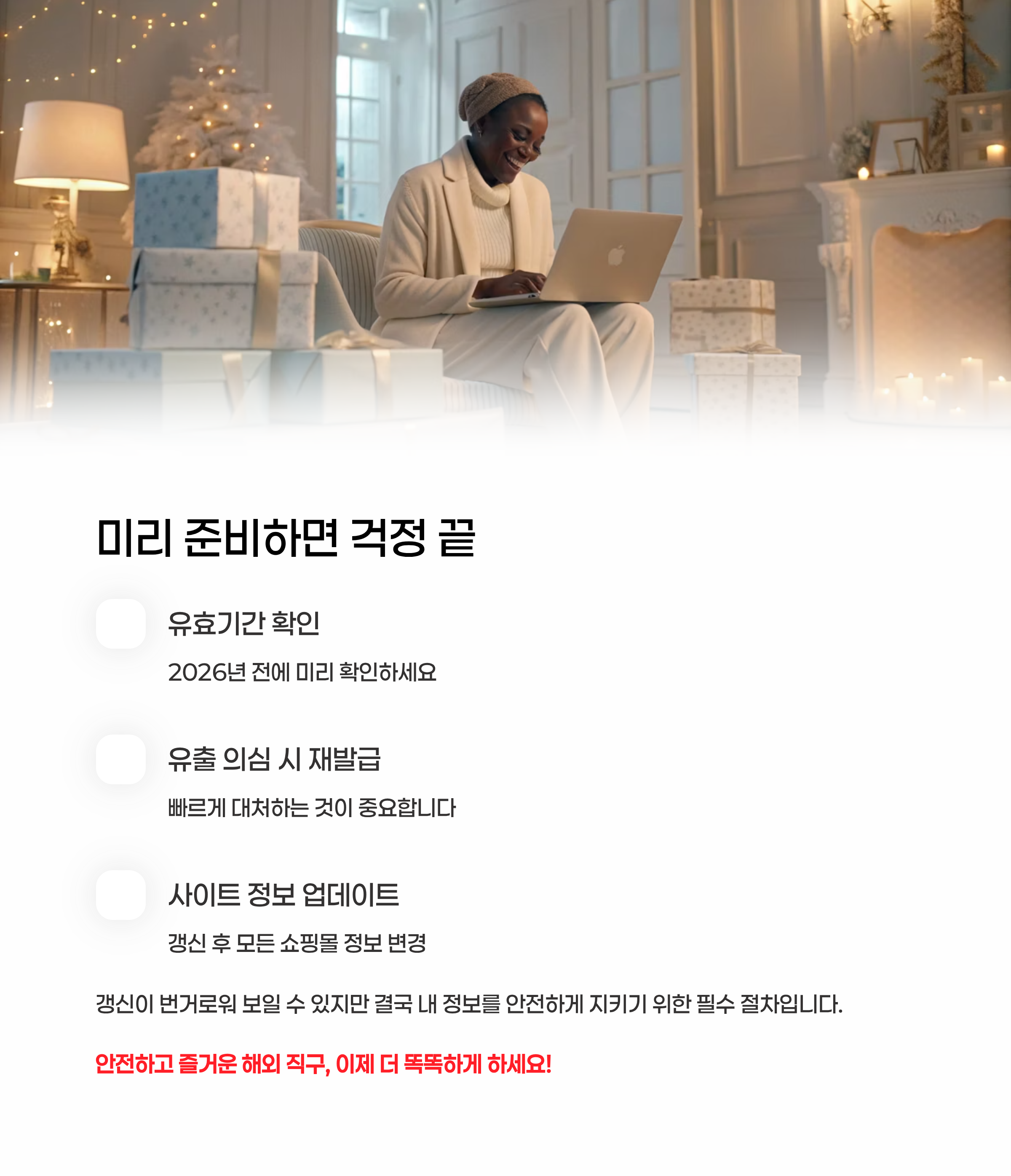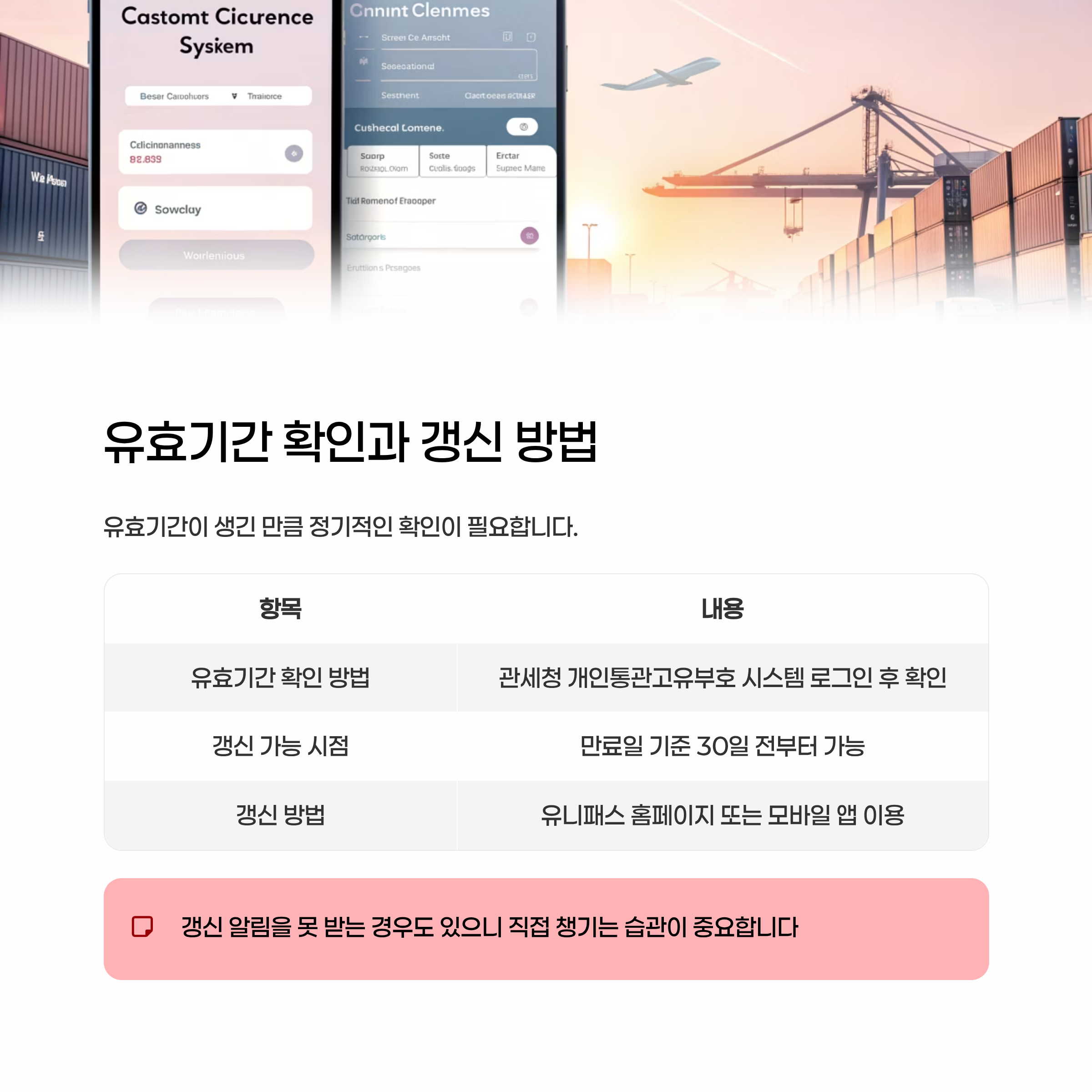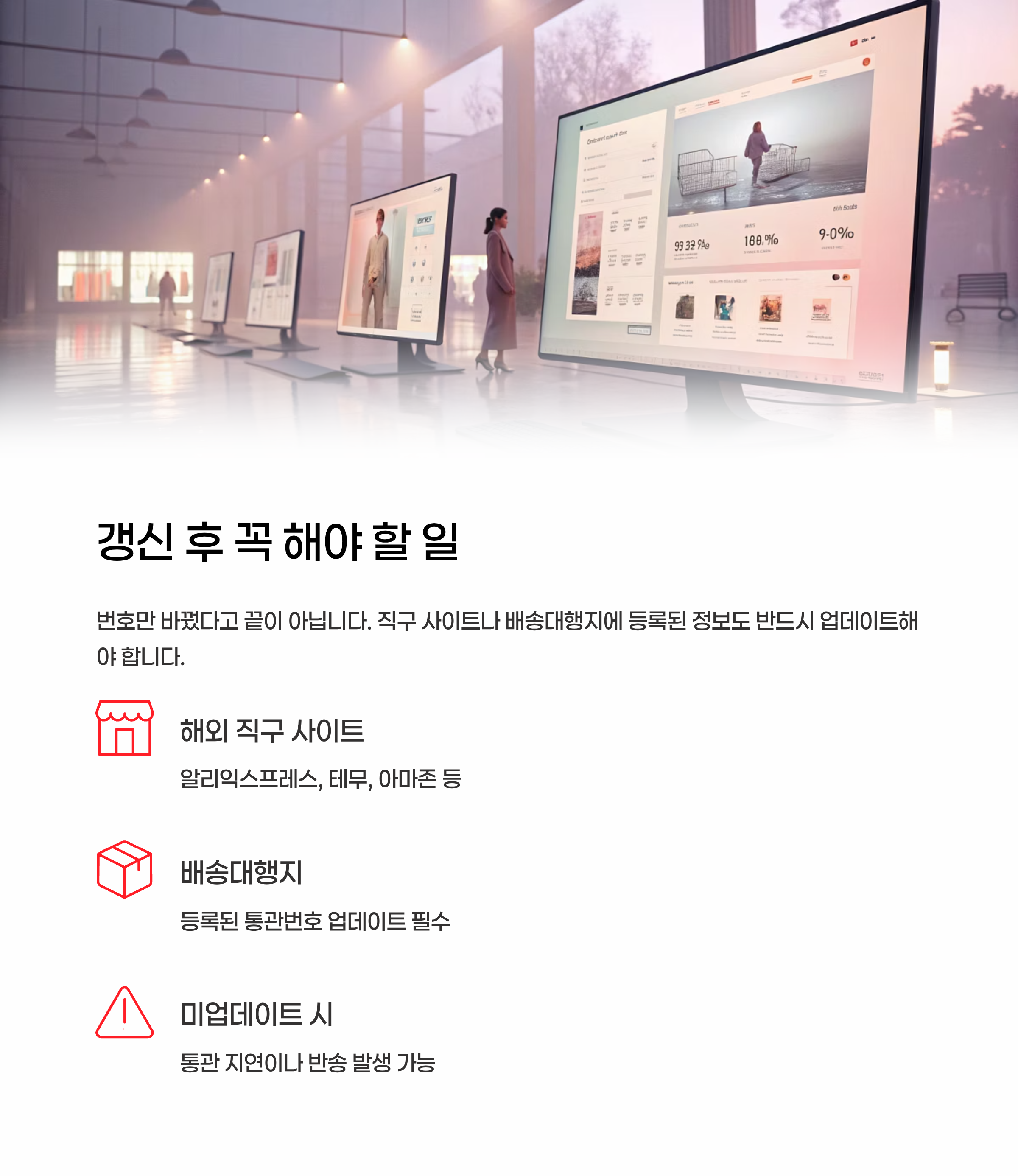 갱신 후 그대로 두면 통관 지연이나 반송 등의 불편을 겪을 수 있습니다.