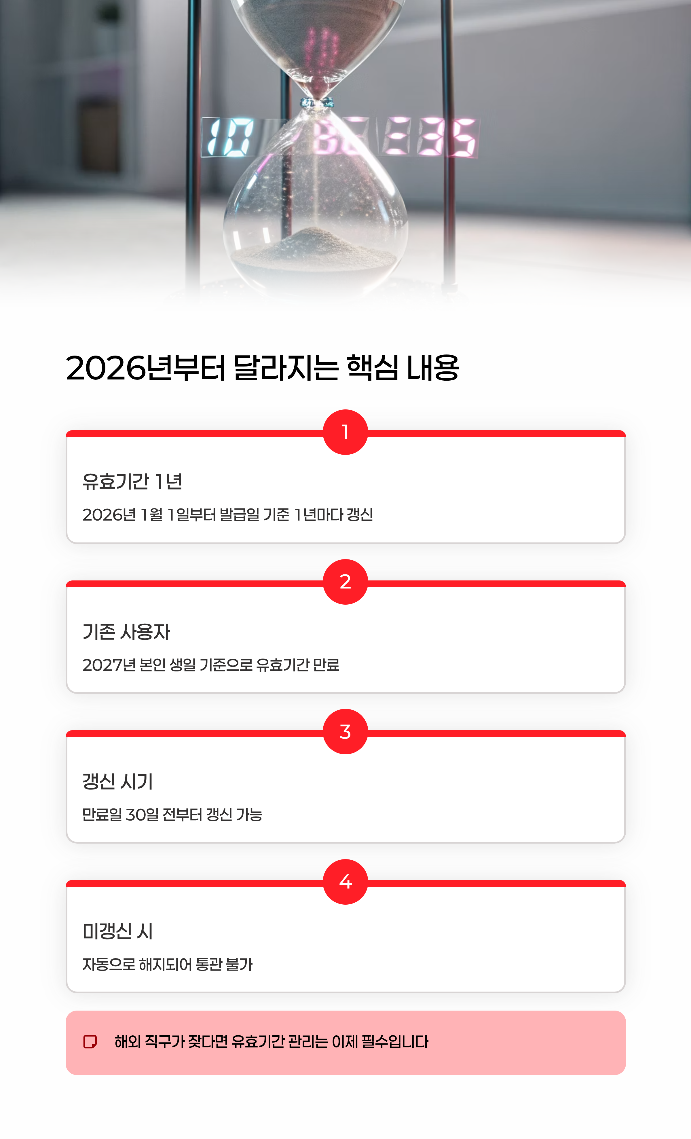 신규 발급자는 발급일 기준으로 1년마다 갱신해야 하고, 기존 사용자라면 2027년 본인 생일을 기준으로 유효기간이 만료됩니다.