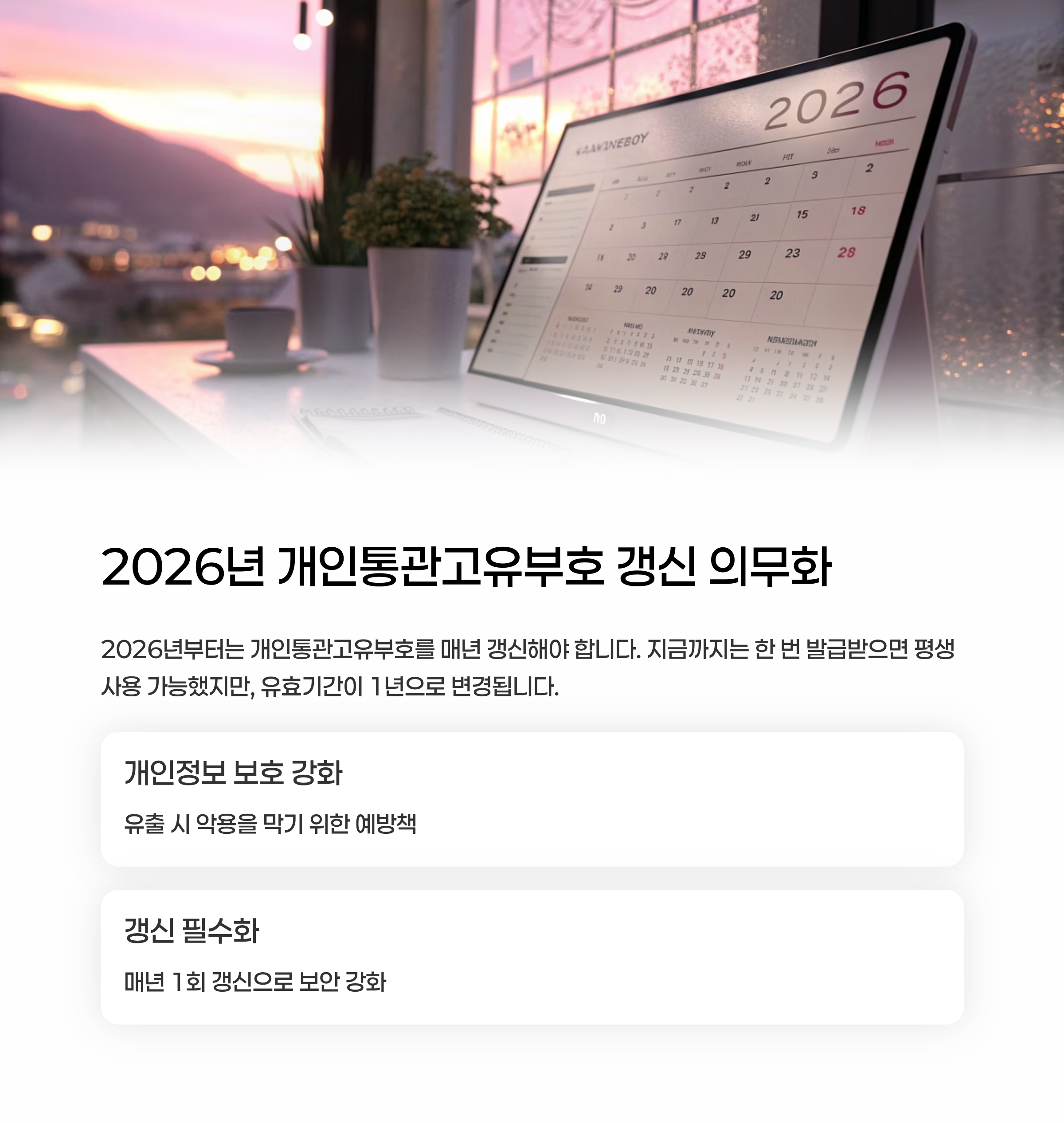 2026년부터는 개인통관고유부호를 매년 갱신해야 합니다. 지금까지는 한 번 발급받으면 평생 사용할 수 있었지만, 앞으로는 유효기간이 1년으로 변경되면서 갱신이 필수화됩니다. 이 변화는 개인정보 보호 강화를 위한 조치이며, 유출 시 악용을 막기 위한 예방책이기도 합니다. 이번 글에서는 갱신 시기, 재발급 방법, 주의사항 등 달라지는 내용을 꼼꼼히 정리해드립니다.