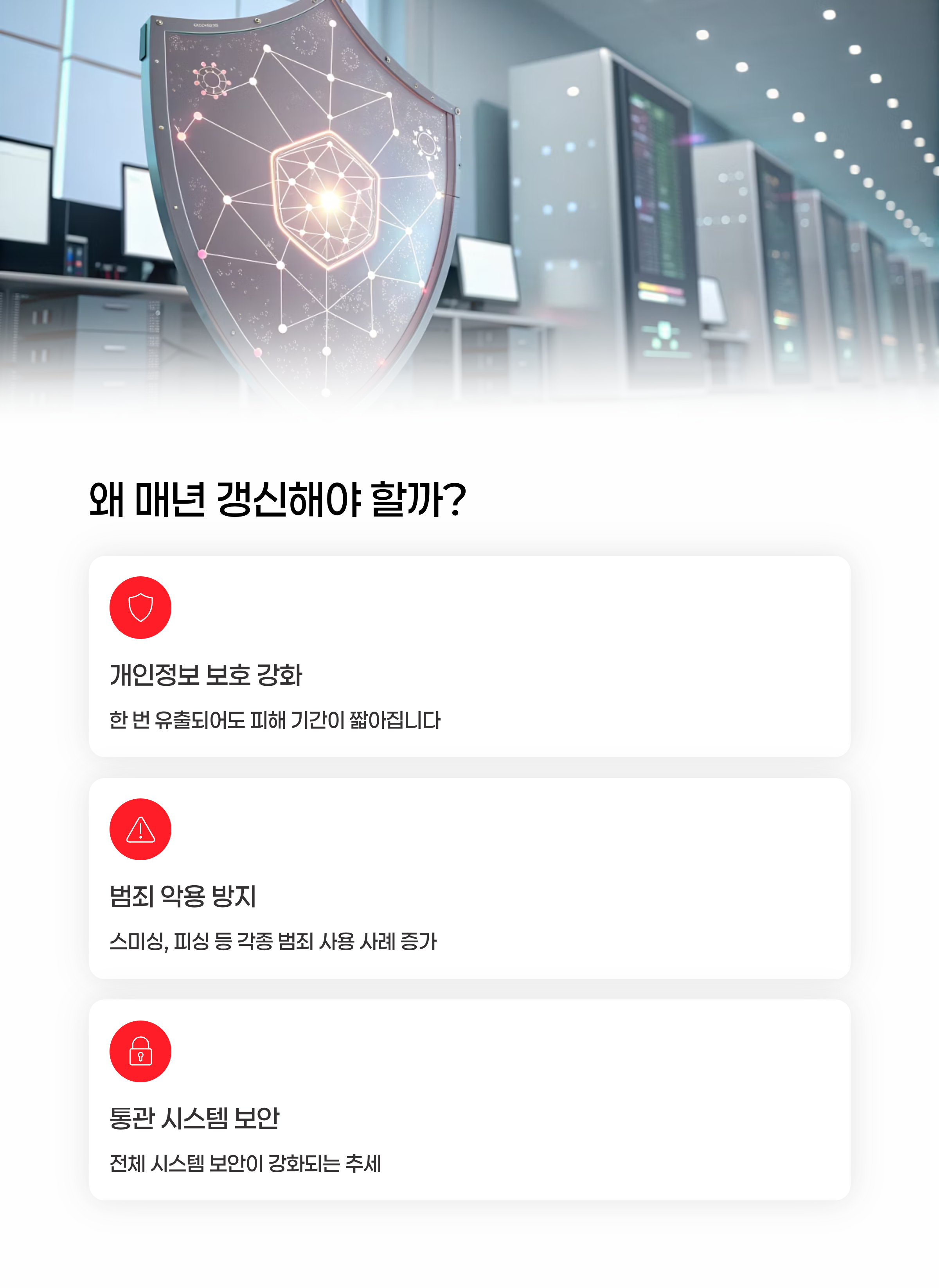 기존에는 한 번 유출되면 그 번호가 영구적으로 악용될 수 있었지만, 매년 번호를 바꾸게 되면 유출되더라도 피해 기간이 짧아집니다.