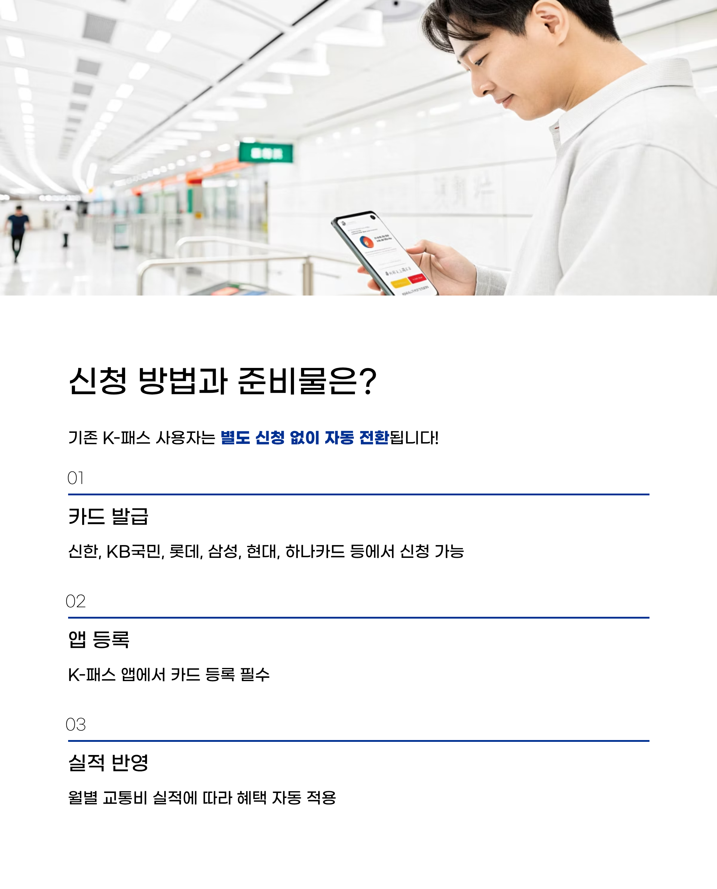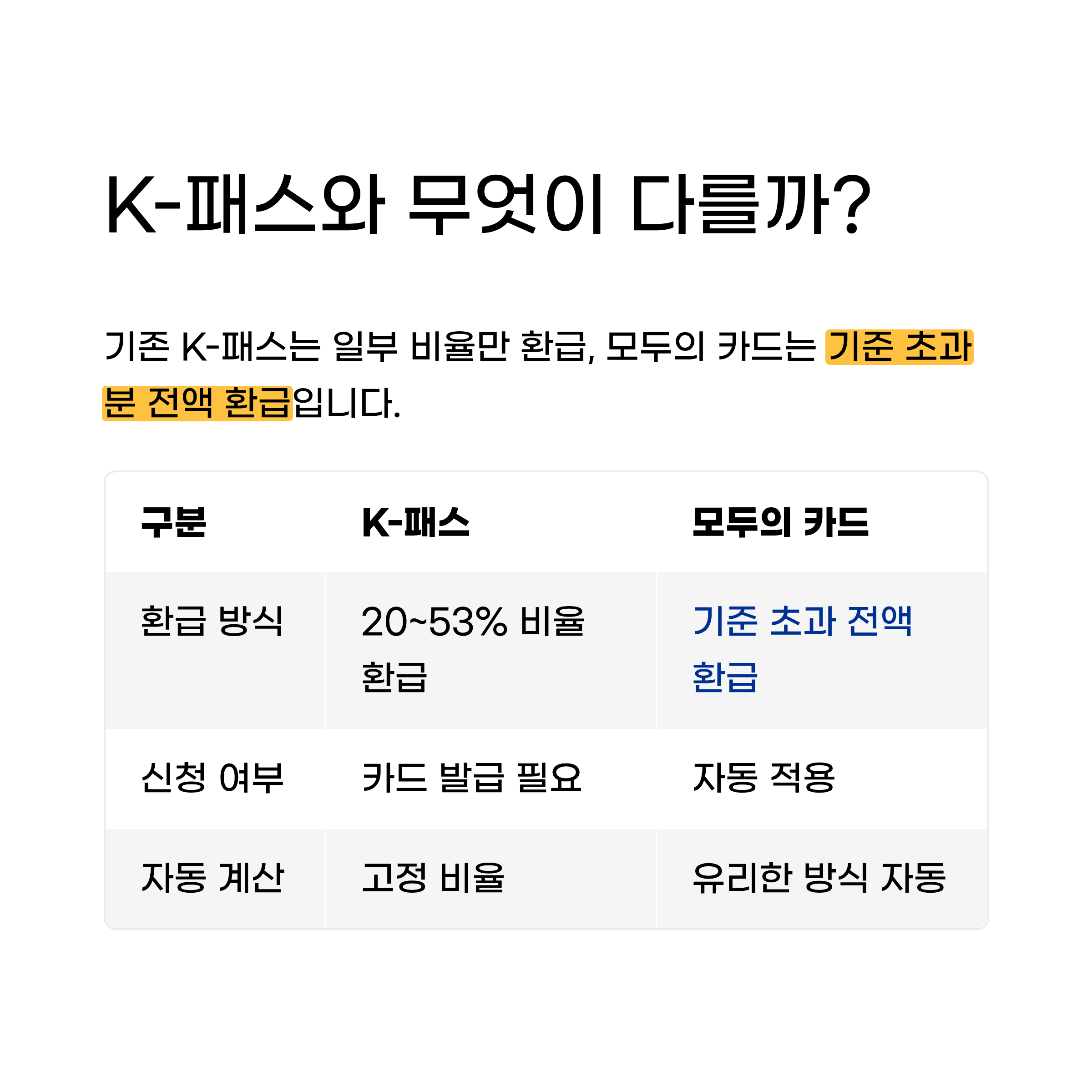 기존 K-패스 사용자는 별도의 신청 없이 모두의 카드로 자동 전환됩니다.