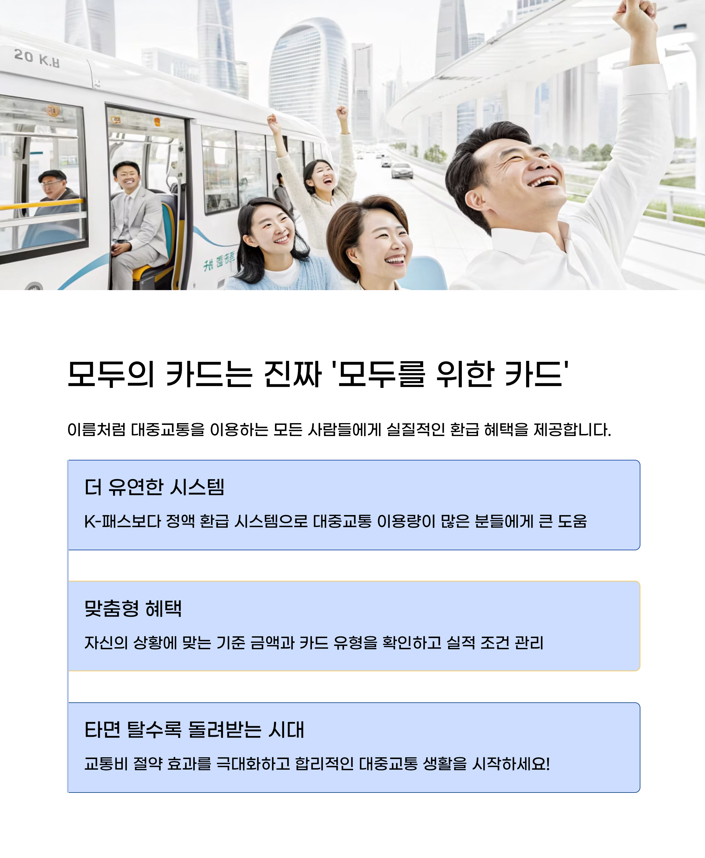 2026년부터 본격 도입되는 ‘모두의 카드’는 대중교통비 환급을 위한 신개념 제도입니다.
