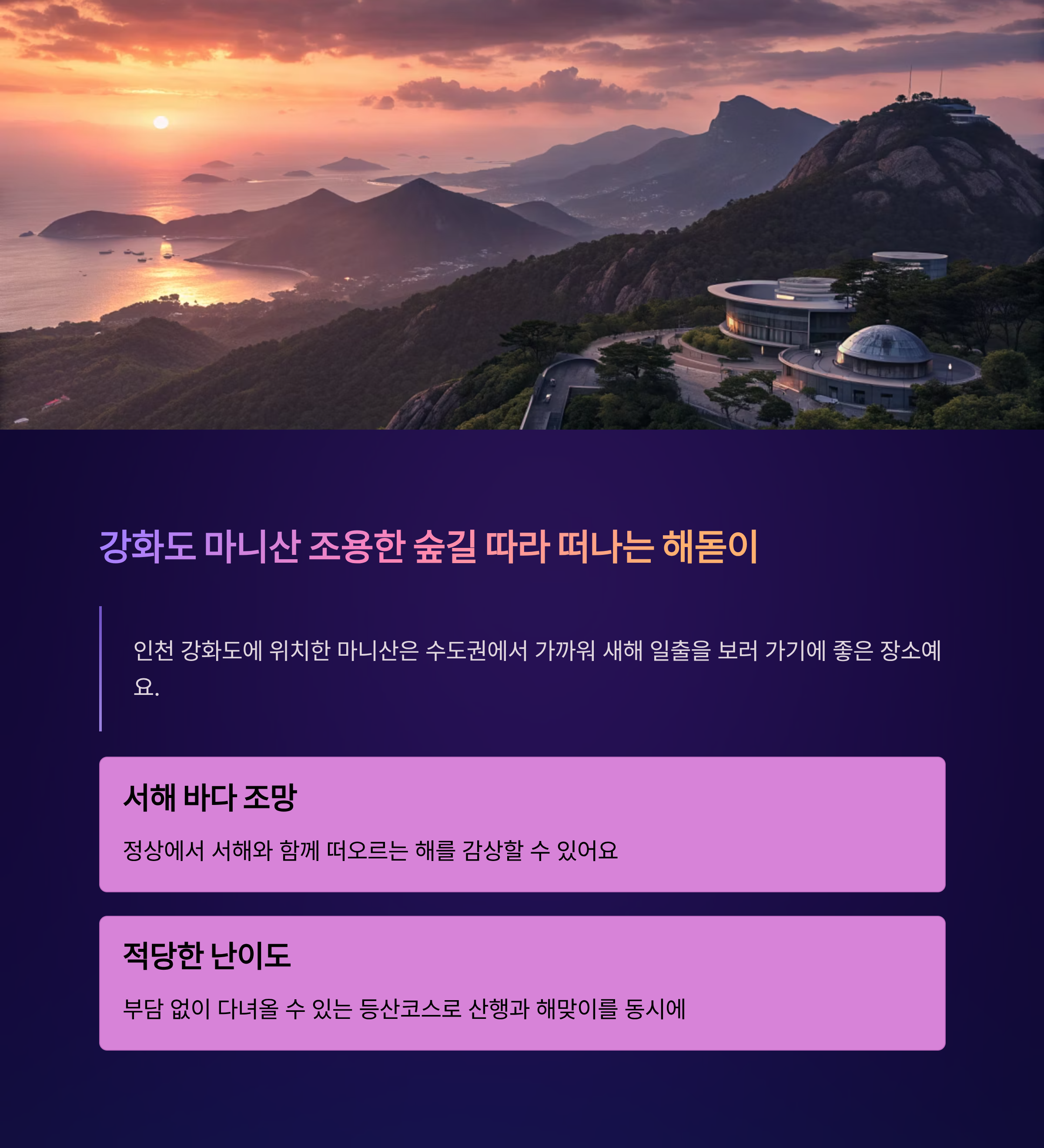 강화도 마니산, 조용한 숲길 따라 떠나는 해돋이