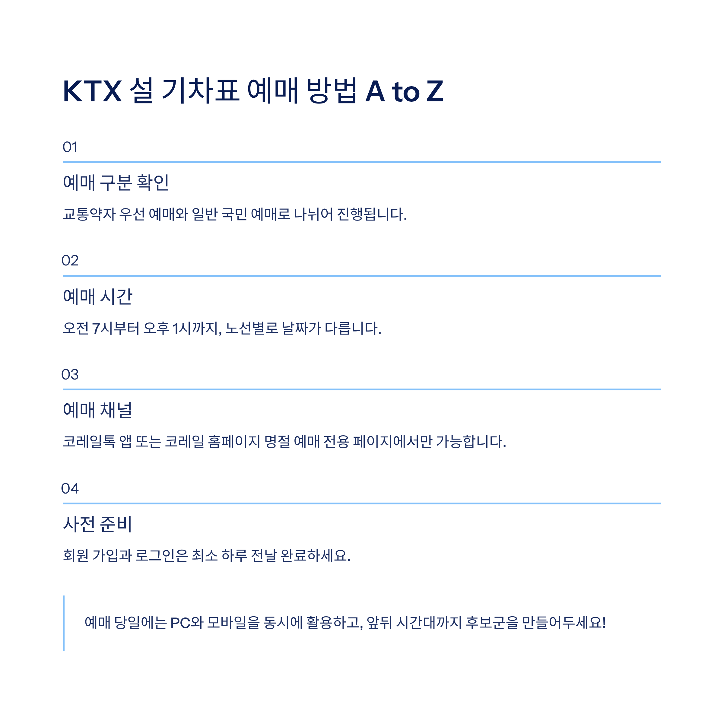 성공적인 기차표 예매를 위해 미리 준비해야 할 것들을 정리해볼게요.