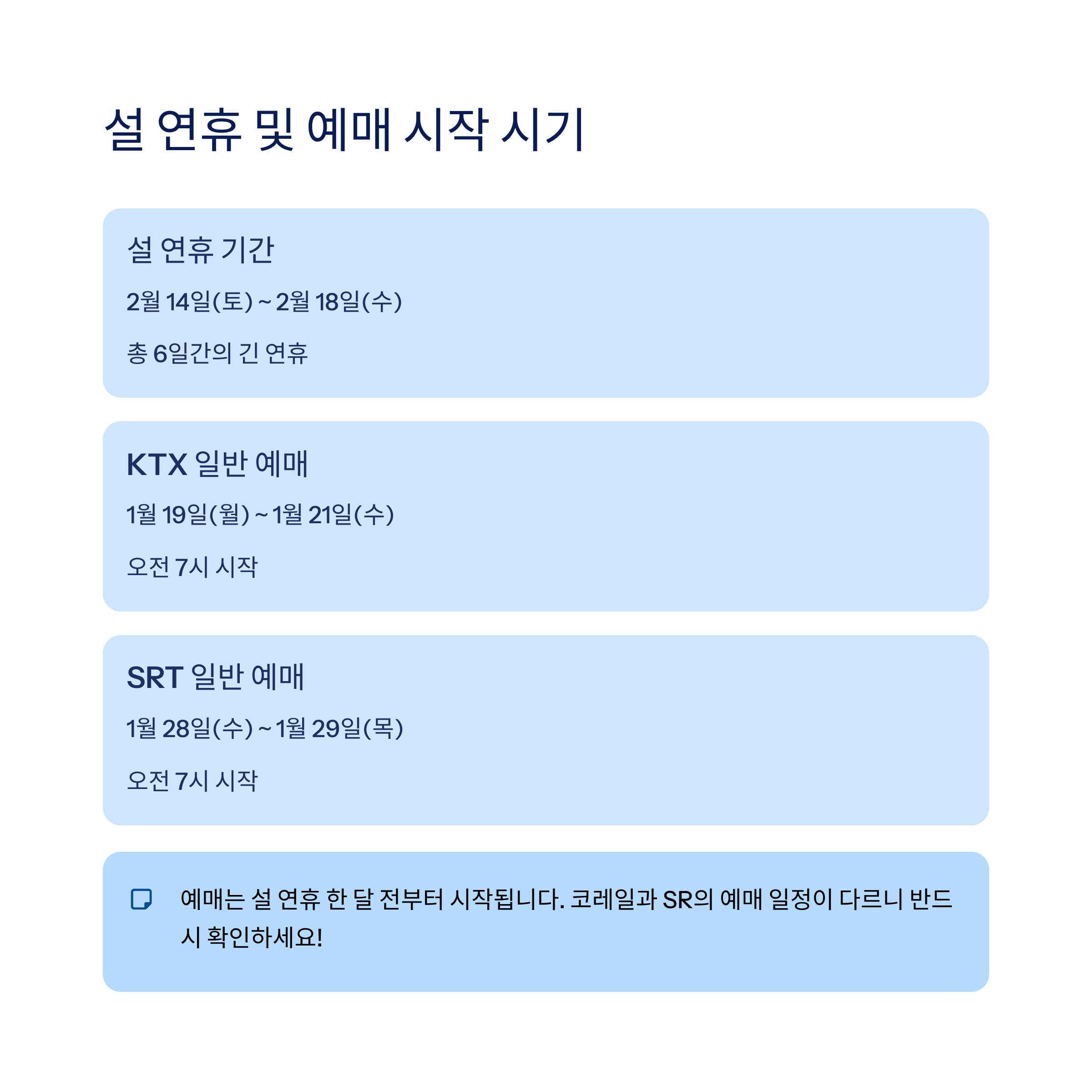 설 연휴 및 예매 일정 요약
