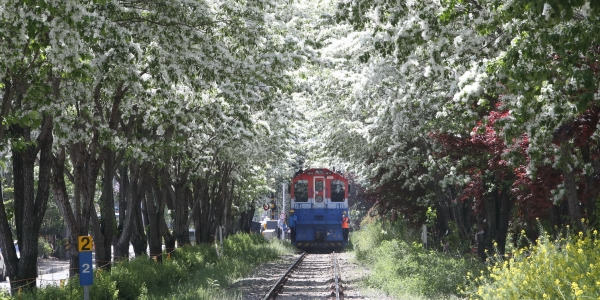 전주 북전주선 철길을 따라 늘어선 이팝나무가 5월 초 눈부시게 피어나는 명소입니다. 일반 열차가 아닌 산업용 기차가 지나가는 이 철길은 평일에만 운행되어, 평일에 방문하면 기차가 지나가는 특별한 장면도 볼 수 있어요. 근처에 있는 팔복예술공장도 함께 들러보세요!