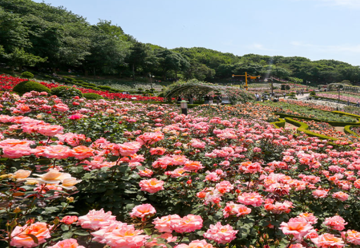 도당산 자락에 위치한 장미 테마 공원으로, 15만 그루의 장미가 조성된 수도권 최대 장미정원입니다. 대중교통 접근성도 좋아 당일치기 나들이 장소로 제격입니다.
