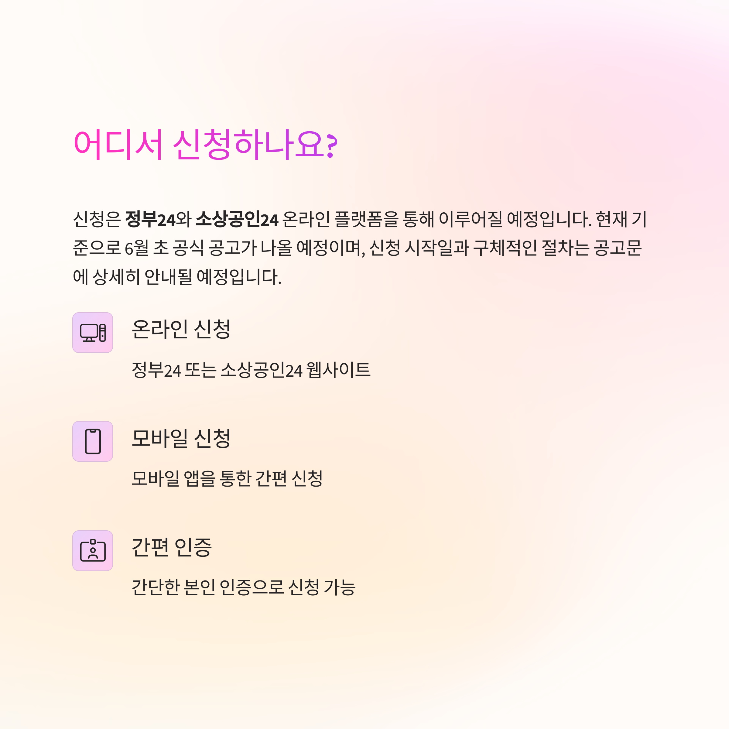 신청은 정부24와 소상공인24 온라인 플랫폼을 통해 이루어질 예정입니다.