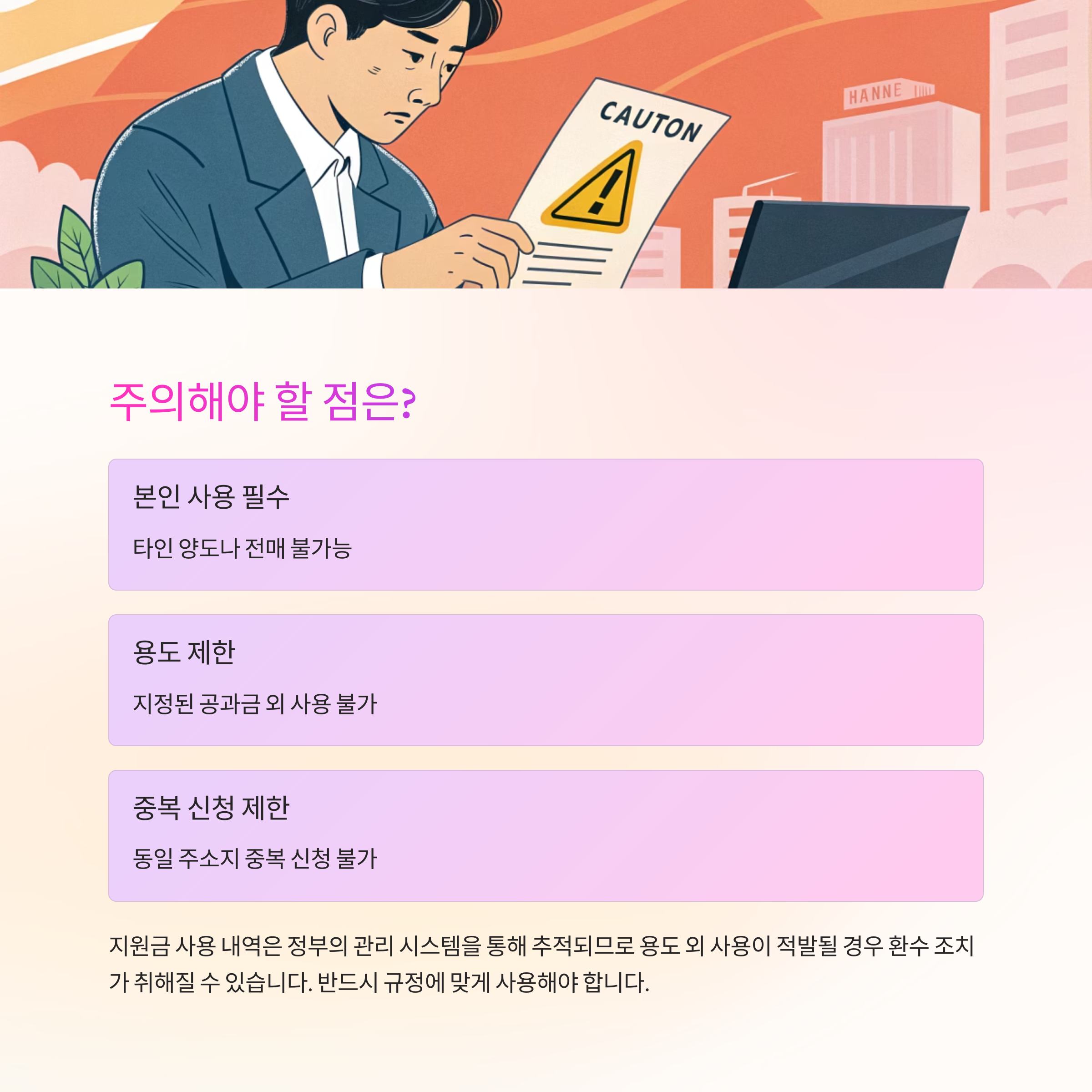 용도 외 사용이 적발될 경우 환수 조치가 취해질 수 있어요.