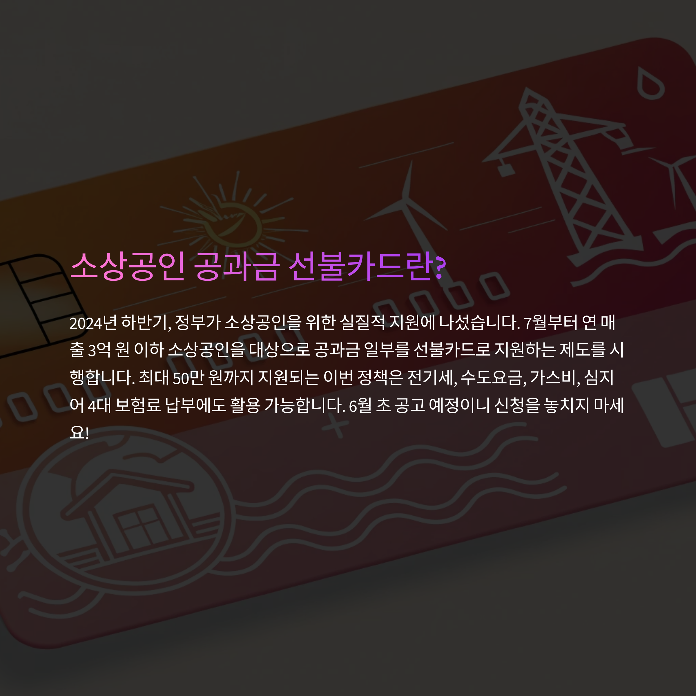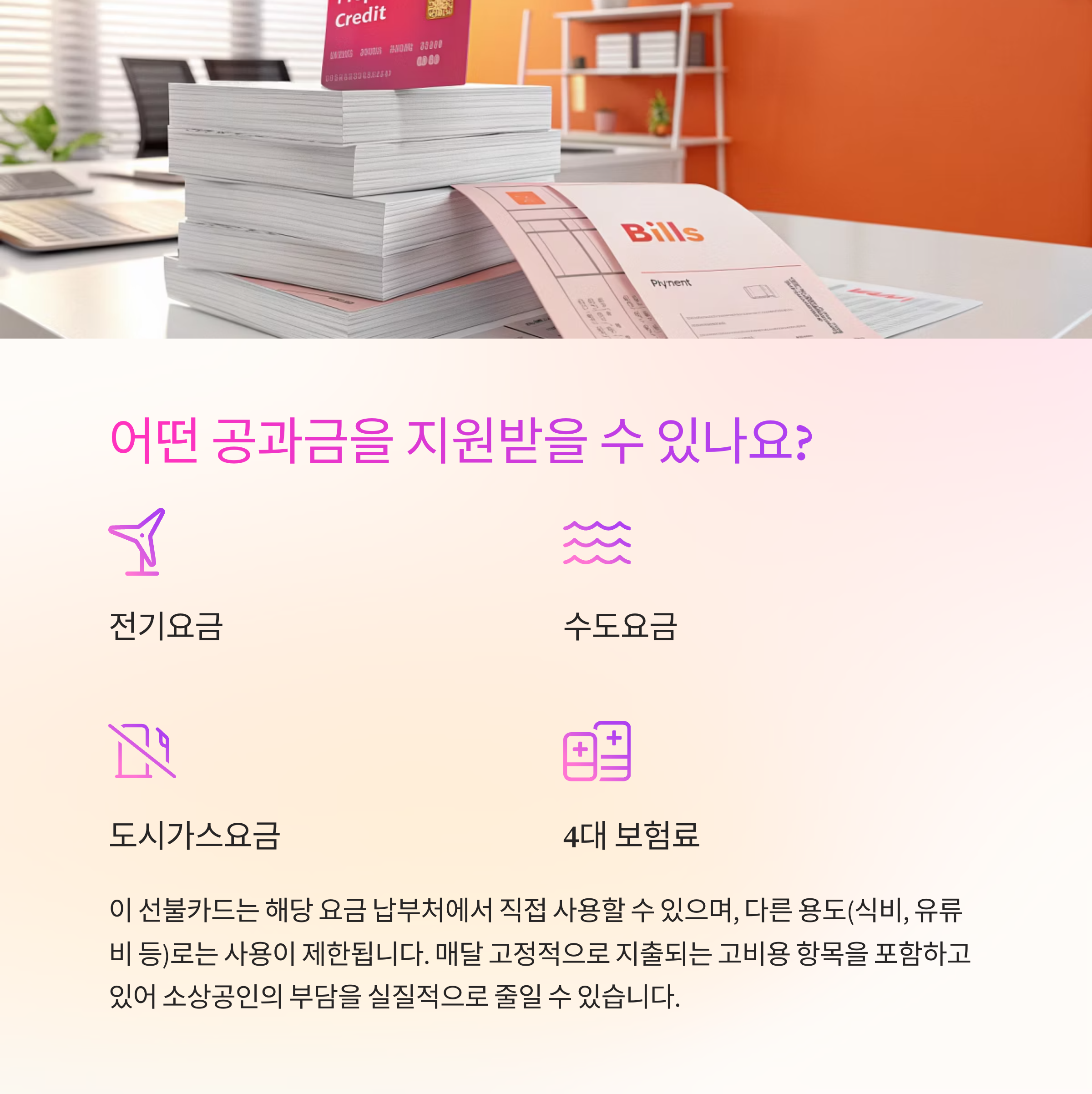 전기세, 가스요금까지? 소상공인을 위한 공과금 선불카드 지원제도 자세히 알아보기