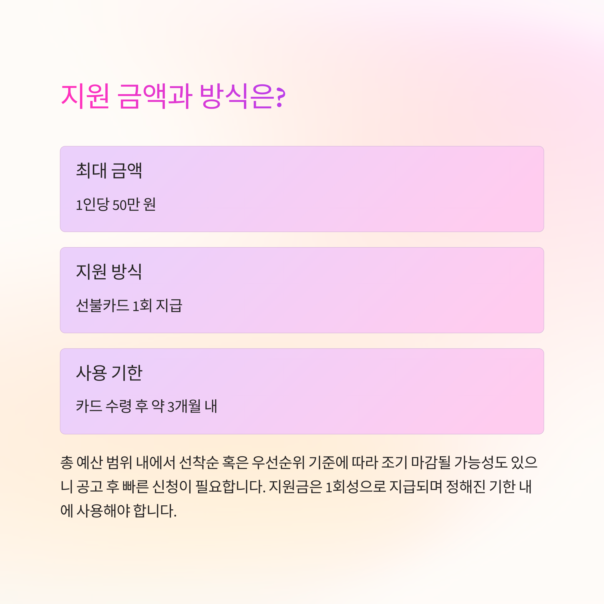 최대 50만 원 한도 내에서 1회 지급 방식으로 지원됩니다.
