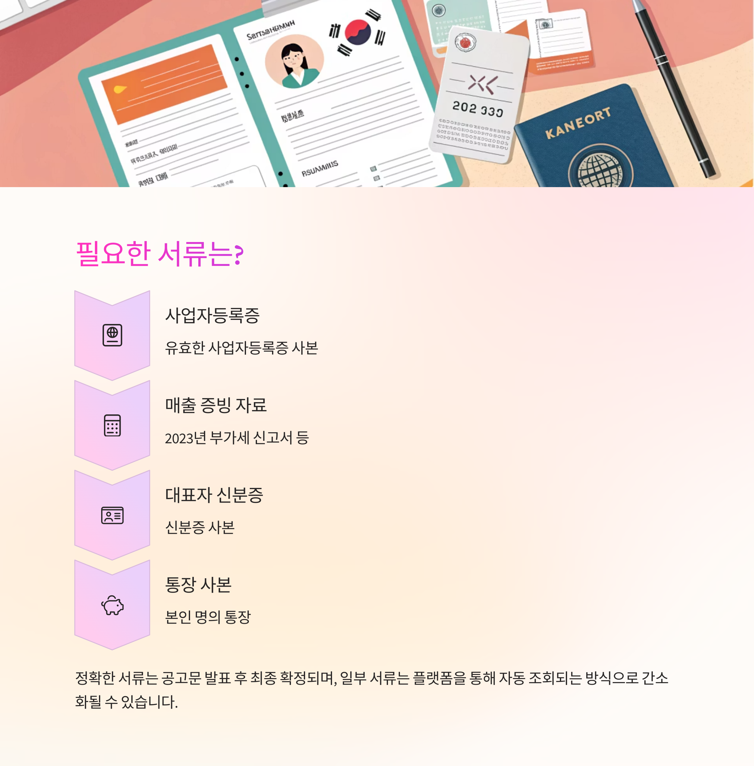 정확한 서류는 공고문 발표 후 최종 확정되며,