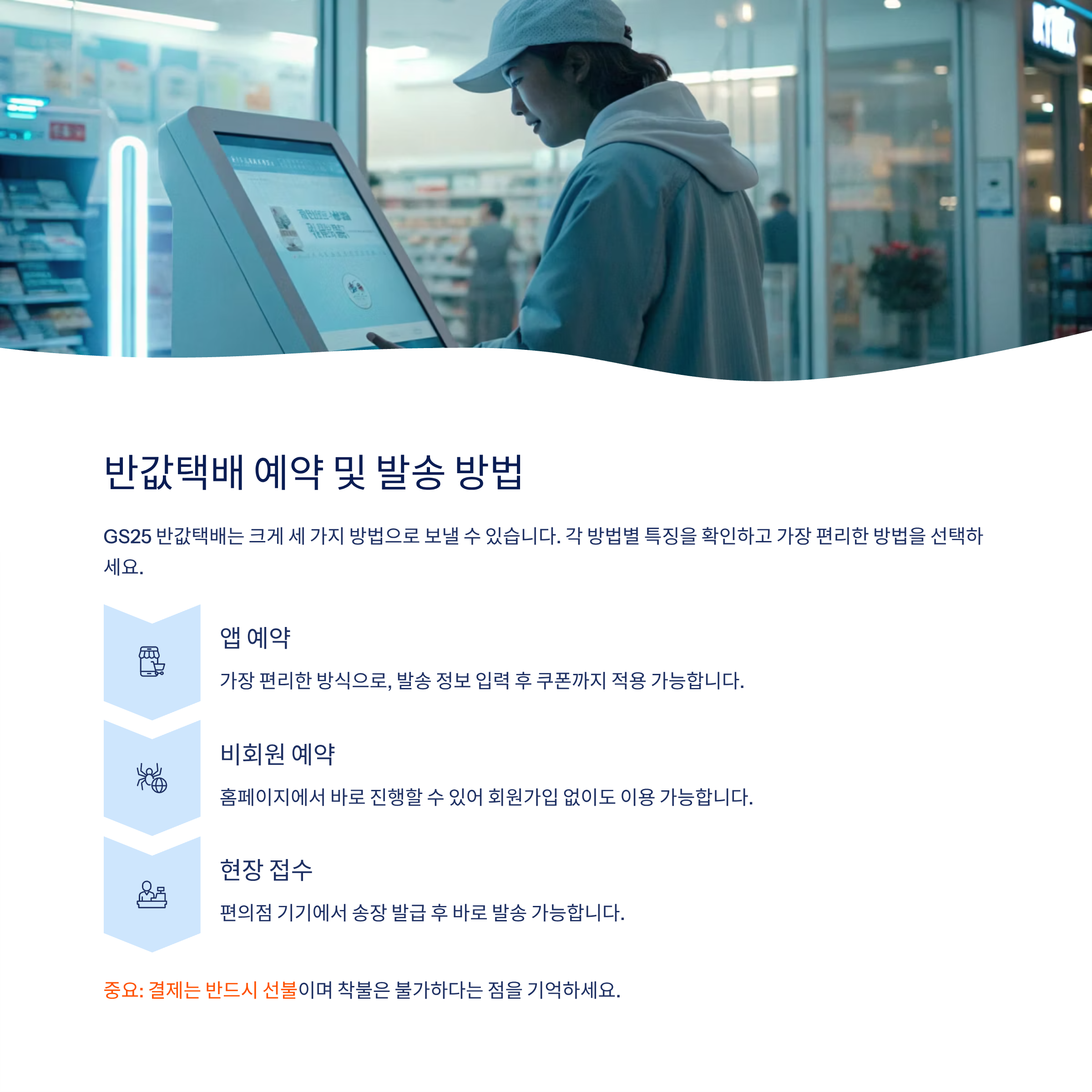 GS25 반값택배는 크게 세 가지 방법으로 보낼 수 있습니다.