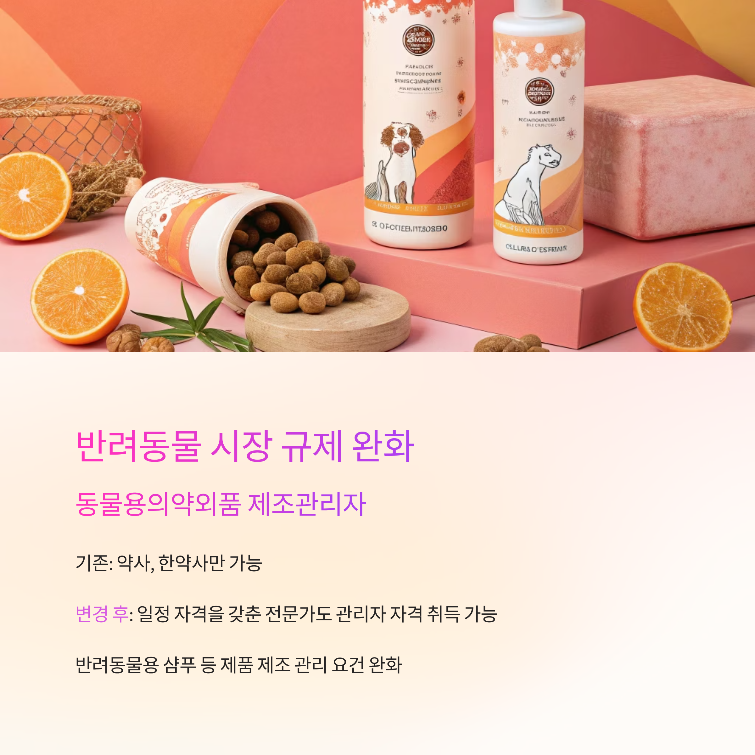 | 동물용의약외품 | 시장 진입 장벽 완화, 다양한 제품 출시, 소비자 선택권 확대 |