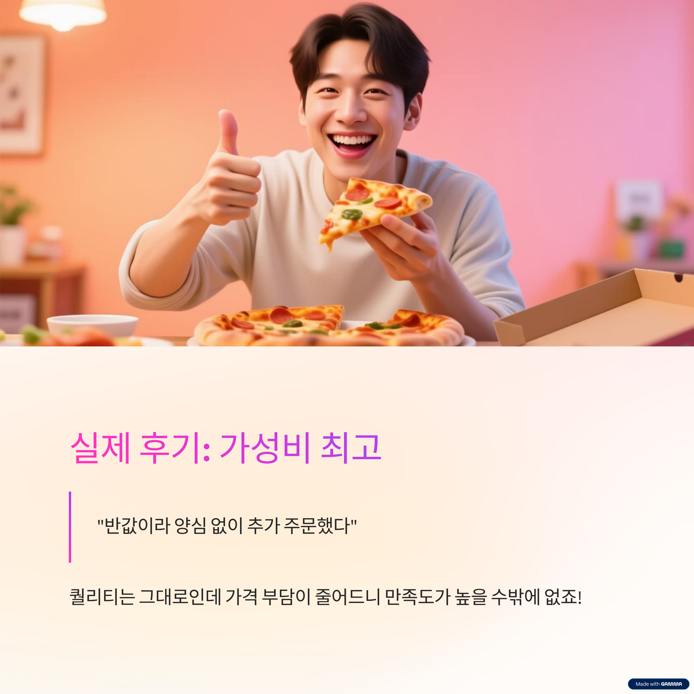 실제로 SKT 할인으로 피자를 주문해 본 후기를 보면, "반값이라 양심 없이 추가 주문했다"라는 반응이 많습니다. 퀄리티는 그대로인데 가격 부담이 줄어드니 만족도가 높을 수밖에 없죠.