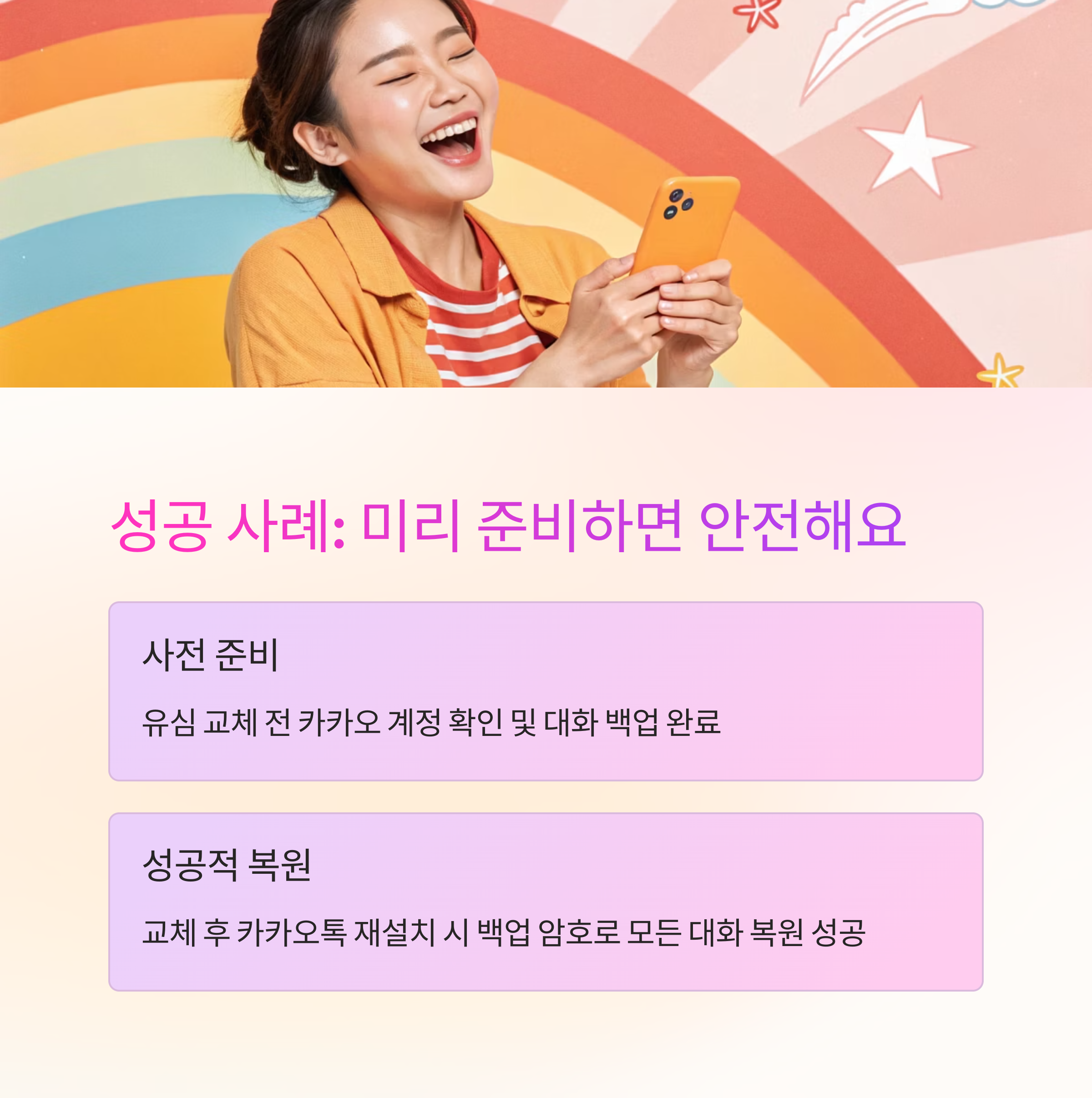 그녀는 유심 교체 전에 카카오 계정을 확인하고 대화 백업을 완료해두었고,