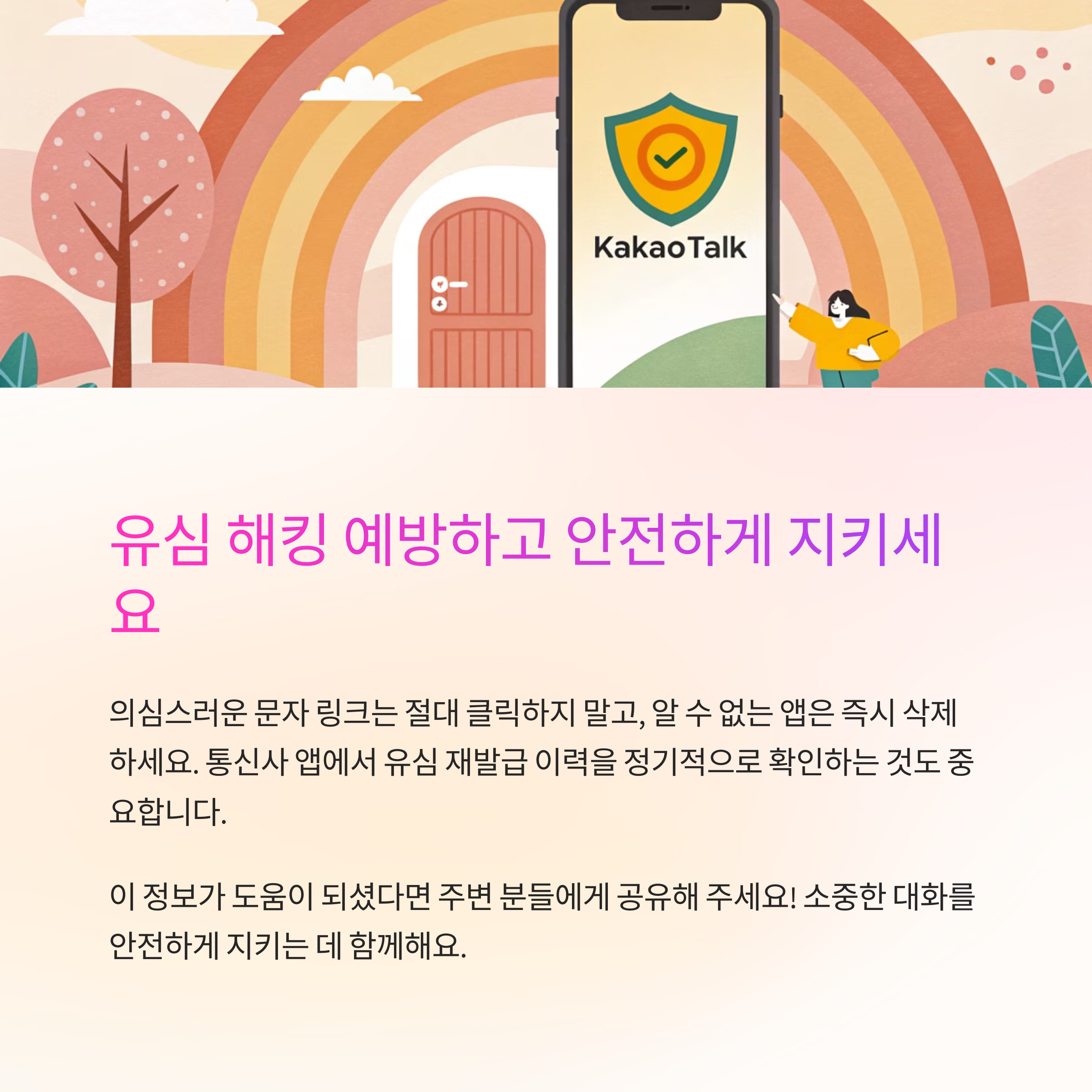 최근 유심 해킹은 문자 링크 클릭이나 피싱 앱 설치 등으로 시작되므로