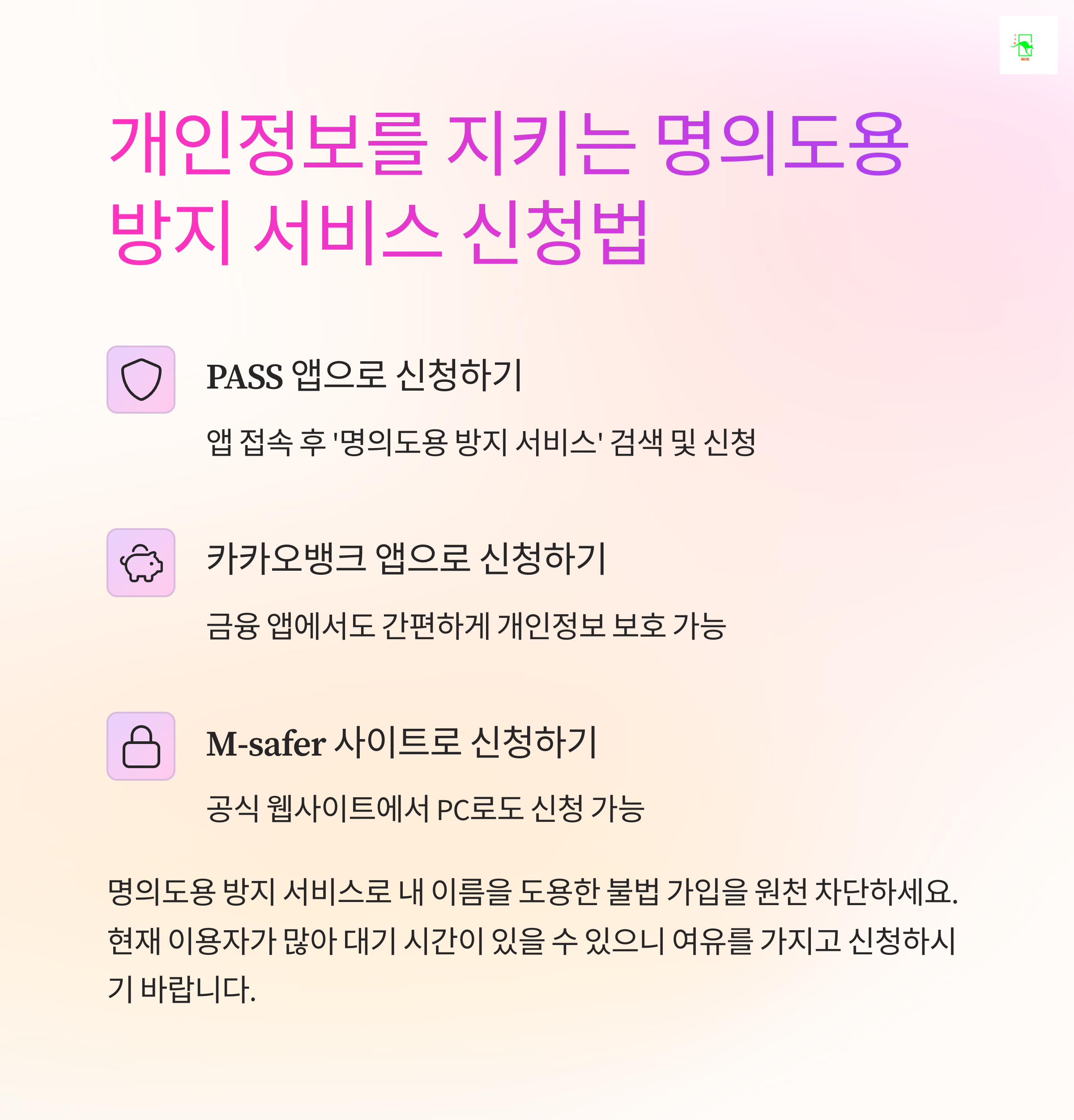 | 명의도용 방지 서비스 | 이름 도용 차단 | PASS/카카오뱅크/M-safer 신청 |